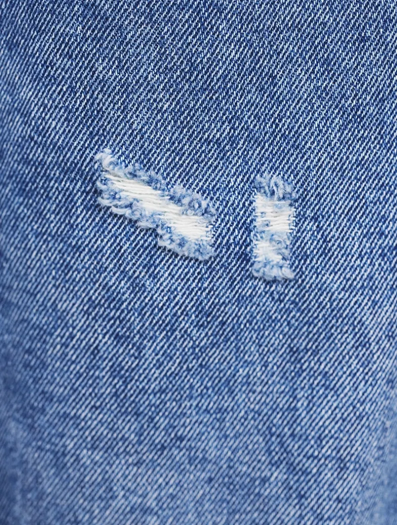 These jeans are cut to a loose fit with a mid-rise waist, wide leg, and long length. The 2021 jeans are crafted from organic cotton denim with a button fly and five-pocket construction.