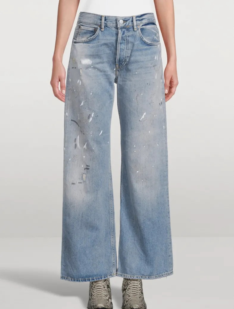 These jeans are cut to a loose fit with a mid-rise waist, wide leg, and long length. The 2021 jeans are crafted from cotton-blend denim with a button fly and five-pocket construction.