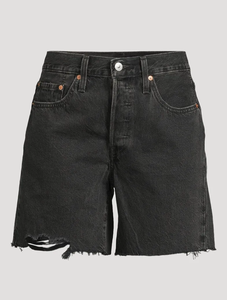 Modelled after the 501® Original jeans, these Mid-Thigh Shorts were made with an iconic vintage-inspired fit, a flattering high rise, and a longer inseam. Crafted from non-stretch denim with a raw-edge hem.