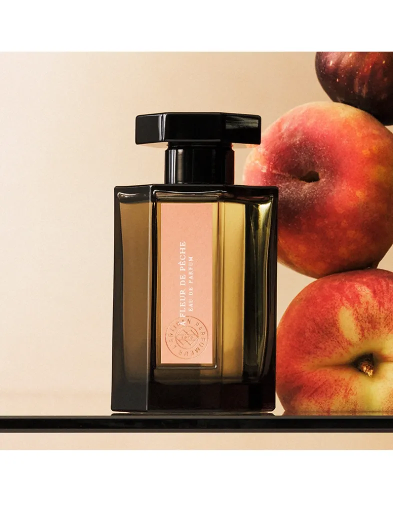 With À Fleur de Pêche, Antoine Maisondieu captures the essence of the peach, the elegant fruit that seduced the gourmets of Louis XIV’s court. By combining its fruity, floral, and woody notes with unexpected ingredients, the unique fragrance reflects all the facets of the fruit from its juicy flesh to its fuzzy touch and woody core.