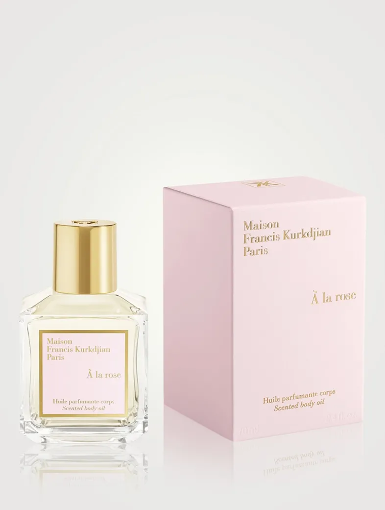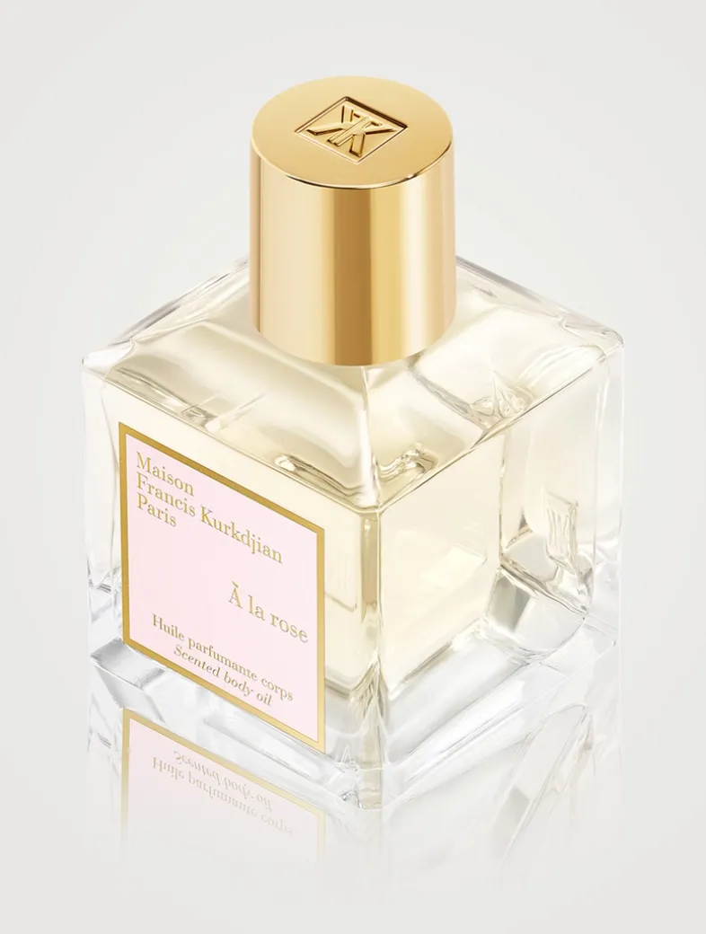 À la Rose scented oil, held in the House’s iconic glass bottle, is composed of sweet almond, macadamia, virgin argan and apricot kernel oils.