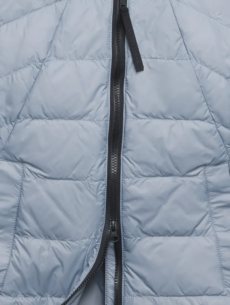 Fully packable into its own pocket, the Abbott is perfect for travel and unpredictable weather. It’s made with feather light fabric for lightweight durability. The cozy down-filled hood adds comfort, with reflective details at back for visibility in low light. Material is certified to the Global Recycling Standard (GRS).