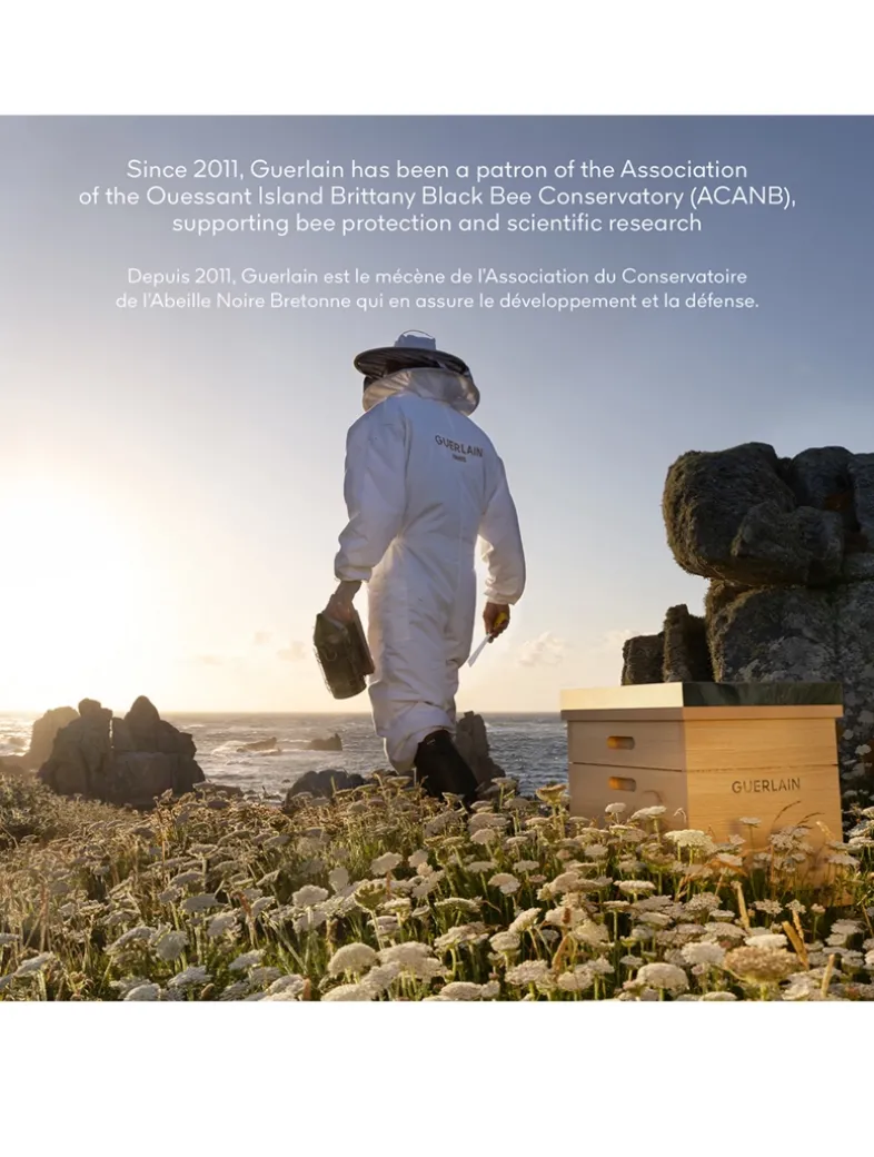 Dynamic Blackbee Repair Technology: This technology combines the most powerful bee products chosen by Guerlain research: exceptional Ouessant Island Black Bee honey (Brittany, France) enriched with three other honeys from unspoilt islands (Corsica, Ikaria, Åland) and a blend of exclusive French royal jellies. Inspired by the latest discoveries in neuro-science, this exclusive technology accelerates skin’s natural self-repair mechanisms. The epidermis’ youthful structures retighten. The eye area appears more open and visibly lifted.