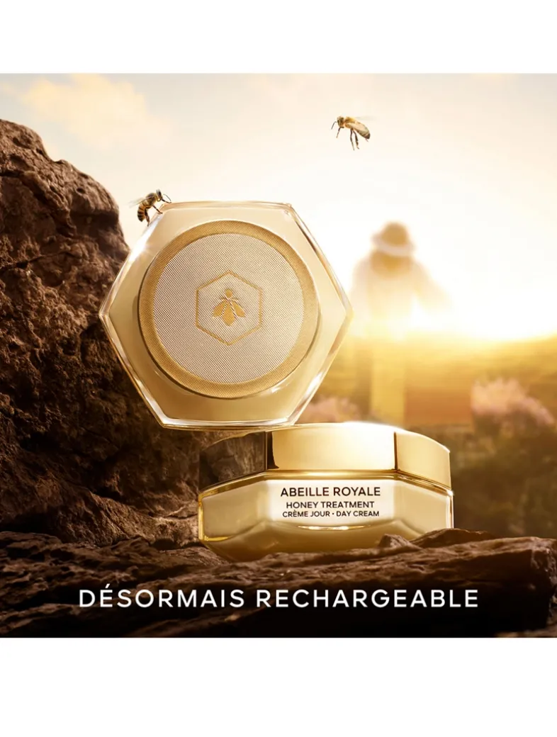 Inspired by clinical honey bandages, Honey Treatment Day Cream concentrates the most powerful bee products chosen by Guerlain research to correct 4 visible marks of collagen loss linked to ageing. Day after day, wrinkles are reduced and skin’s firmness, smooth appearance and radiance are restored. Skin is repaired and looks visibly younger. It is manufactured using a formulation protocol creating a shaping texture with a bandage effect. It seamlessly becomes one with skin, infusing all the epidermal layers with repairing active ingredients. Honey Treatment Day Cream is refillable.