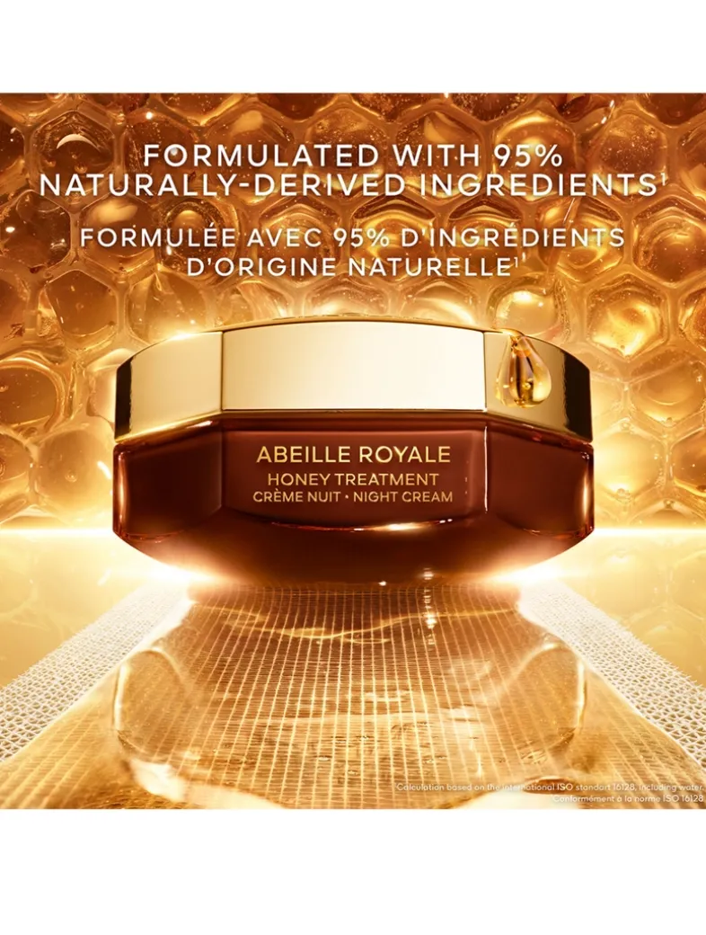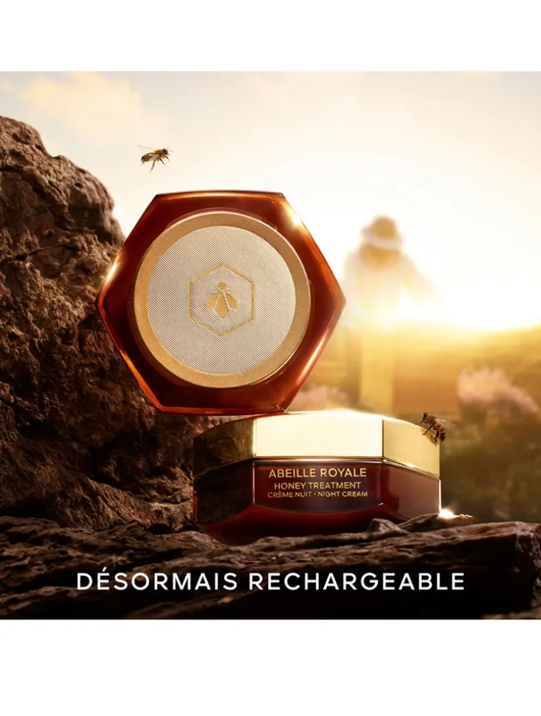Inspired by clinical repairing honey bandages, refillable Honey Treatment Night Cream concentrates the most powerful bee products chosen by Guerlain research to correct 4 visible marks of collagen loss linked to ageing. Wrinkles are reduced, skin becomes denser and recovers its plumpness. The face is redefined and looks visibly younger. It is manufactured using a formulation protocol creating a filler texture with a bandage effect that seamlessly becomes one with skin, infusing all the epidermal layers with youth-repairing active ingredients.