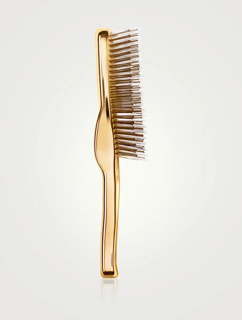 Born of an exclusive collaboration with the prestigious Japanese house S.Heart.S, a specialist in professional haircare tools, this cult brush with a unique ergonomic design is adorned in gold exclusively for Guerlain. A real scalp and hair care brush, it is made up of 376 fibres with massaging heads that give it a double action. It stimulates the scalp to boost hair’s vitality from the root and enhances hair and its shine in a single stroke. Its ultra-resistant waterproof resin design gives it a double use: Everyday use on dry hair. When applying haircare to wet hair to optimise its diffusion and distribution.