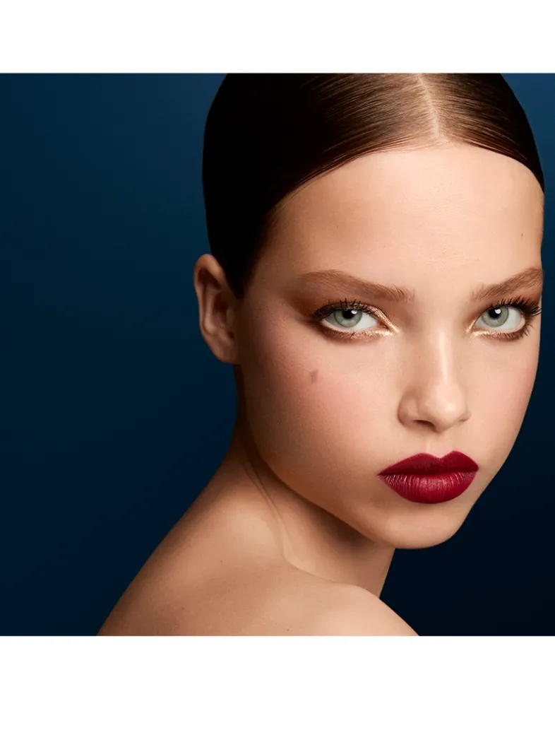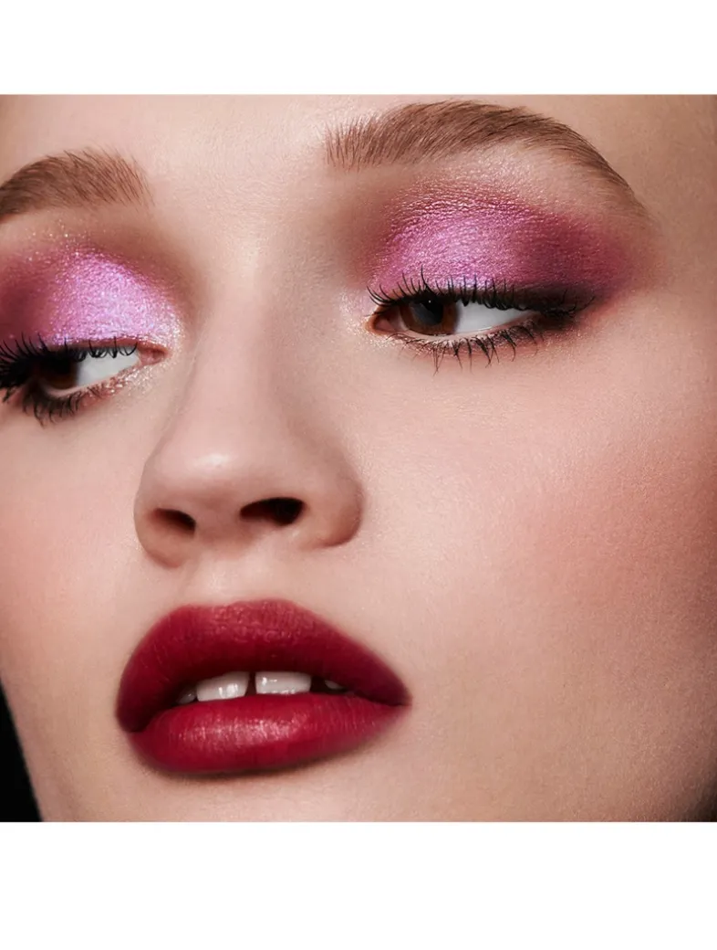 The new sparkly duo eyeshadow palette adorned with red spikes to magnify the gaze with light and shadow. Two new ultra-sensorial, highly pigmented creamy textures that glide on evenly, blend easily, and layer effortlessly. Two new mesmerizing harmonies in a sparkling multidimensional finish, to create a variety of looks, from sheer-shimmer to very-glitter that lasts for hours on end.