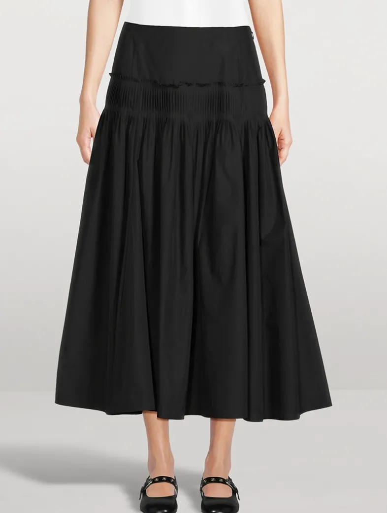 Characterized by its pleated detailing, this high-waisted skirt forms a flared silhouette and fastens with a side zip closure. It’s crafted in a tumbled lightweight fabrication woven with a blend of cotton and certified recycled nylon made from pre-consumer waste by a leading Japanese mill.