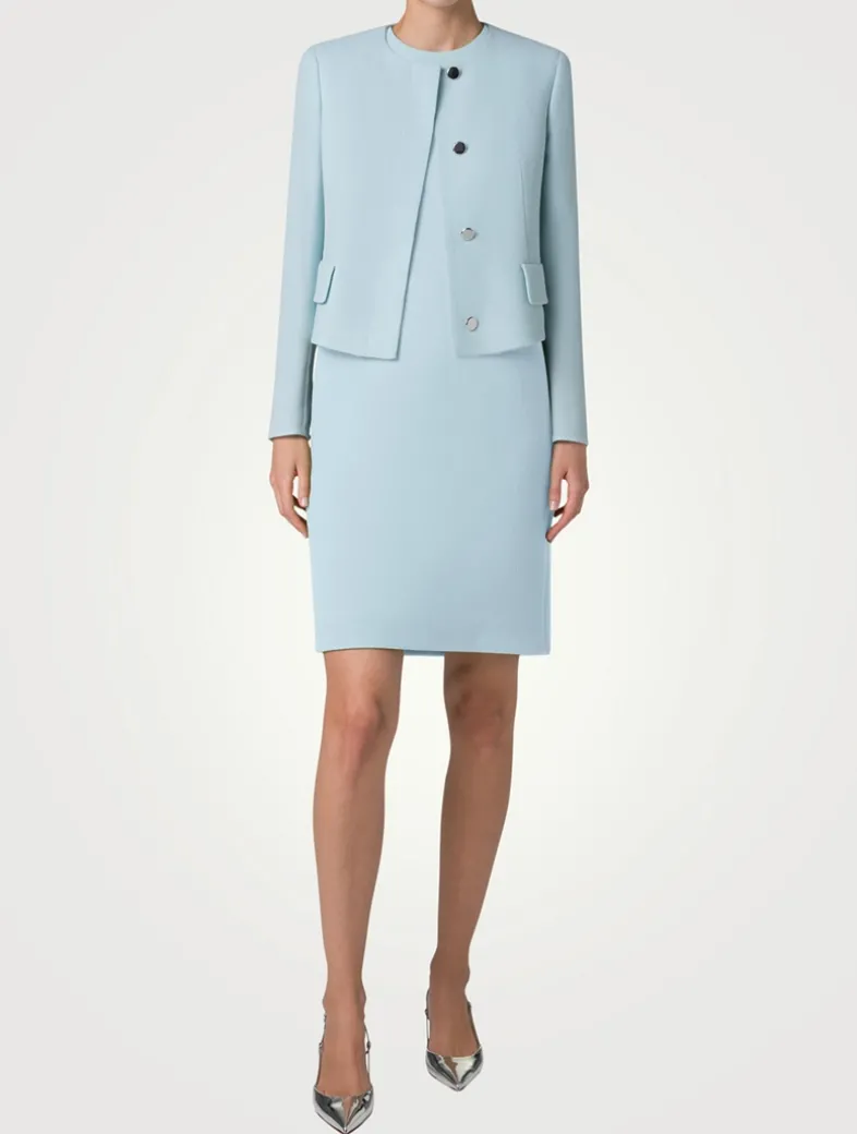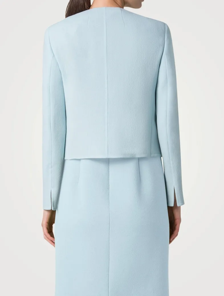 Presented in a boxy-fit silhouette, this jacket in luxurious wool crêpe double-face features a rounded neckline, padded shoulders, and concealed front button fastenings. An understated piece that elevates any ensemble.