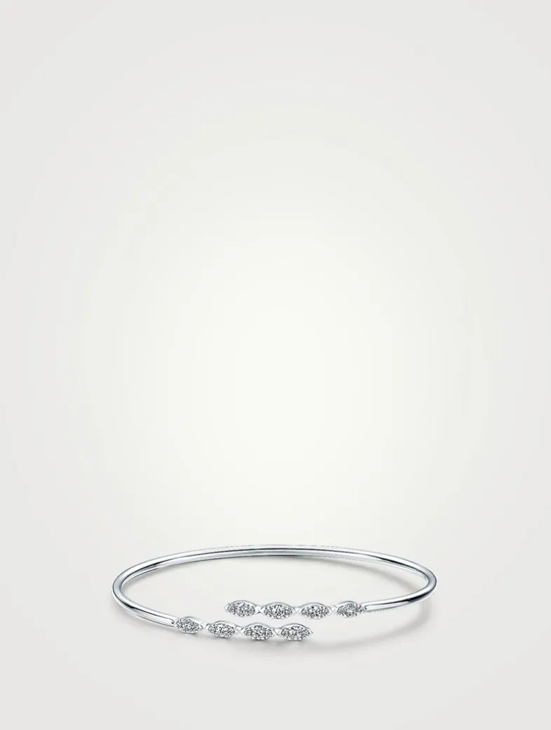Made from flexible gold, this lightweight style features two thin lines of diamonds that overlap at the centre.