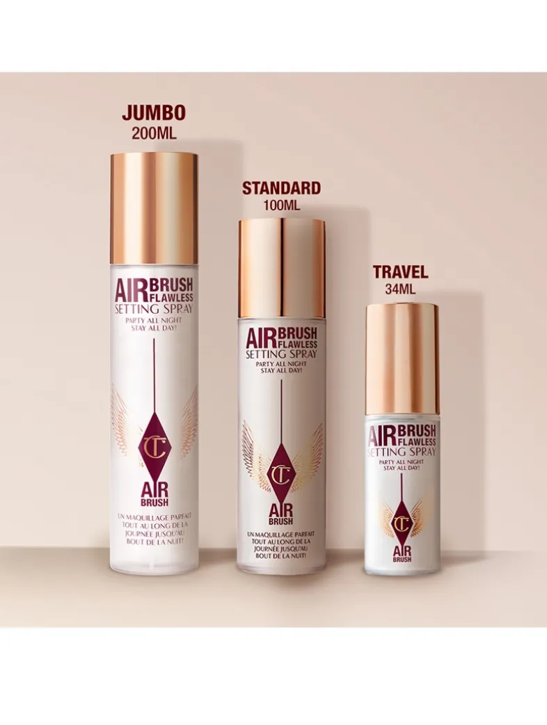 A hydrating, alcohol- and oil-free spray that weightlessly sets makeup for up to 16 hours without melting, fading, or settling into fine lines. The Airbrush Flawless Setting Spray weightlessly primes and sets for up to 16 hours to instantly lock in your makeup look for a flawless, long-lasting, pore-blurring finish. It also features a delicate fresh floral scent. Now available in a limited edition jumbo size!