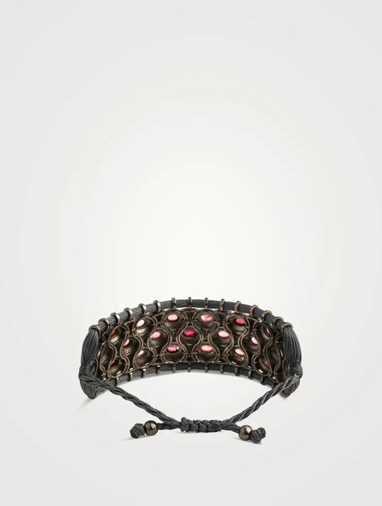 Secured with an adjustable toggle closure, this oversized bracelet is set on silk thread and features an assortment of gemstones.