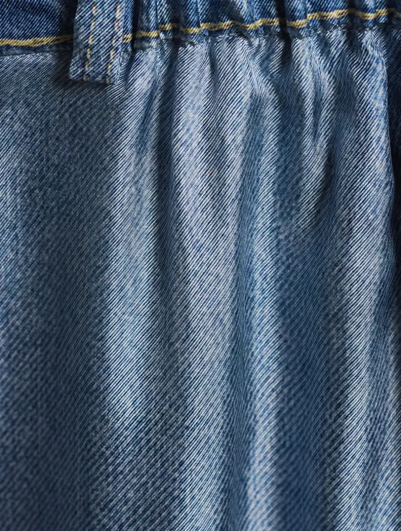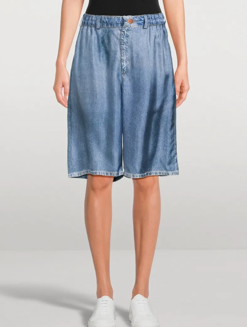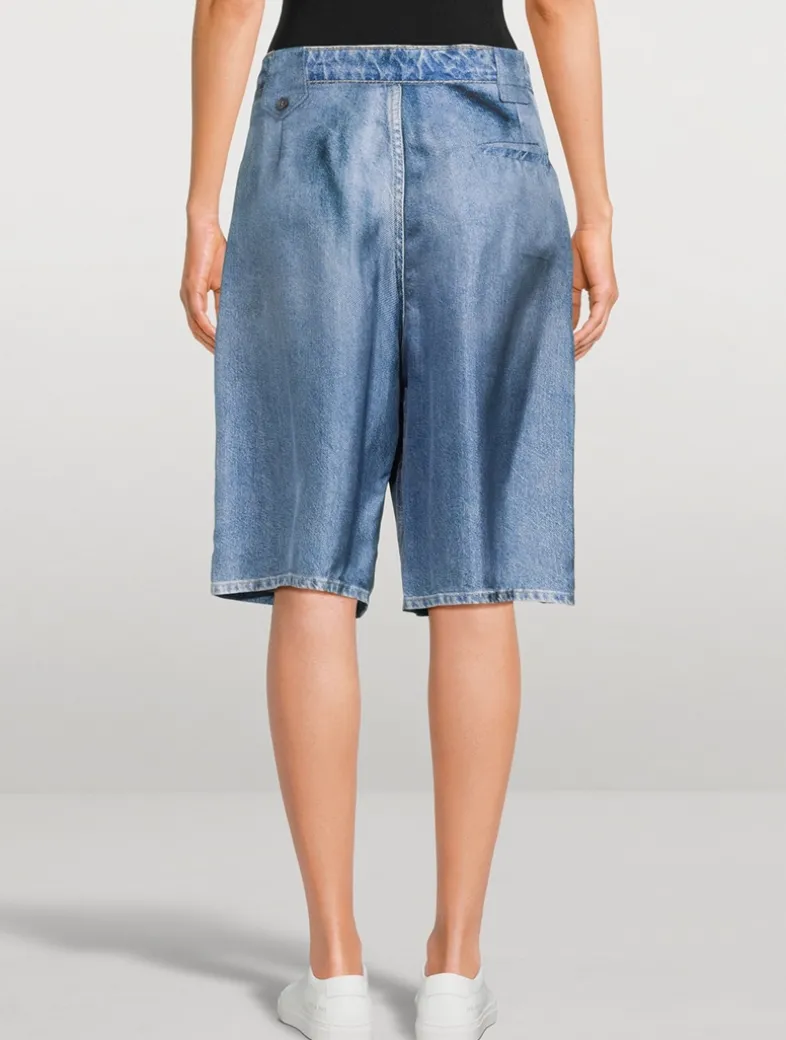 A faux denim print adorns these shorts, giving the pair a trompe l’œil look. Crafted in Italy from pure silk, they have an elastic waistband and a relaxed-leg silhouette.