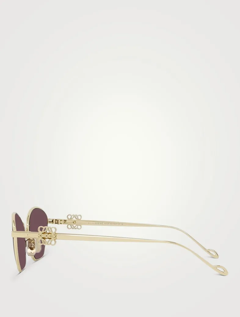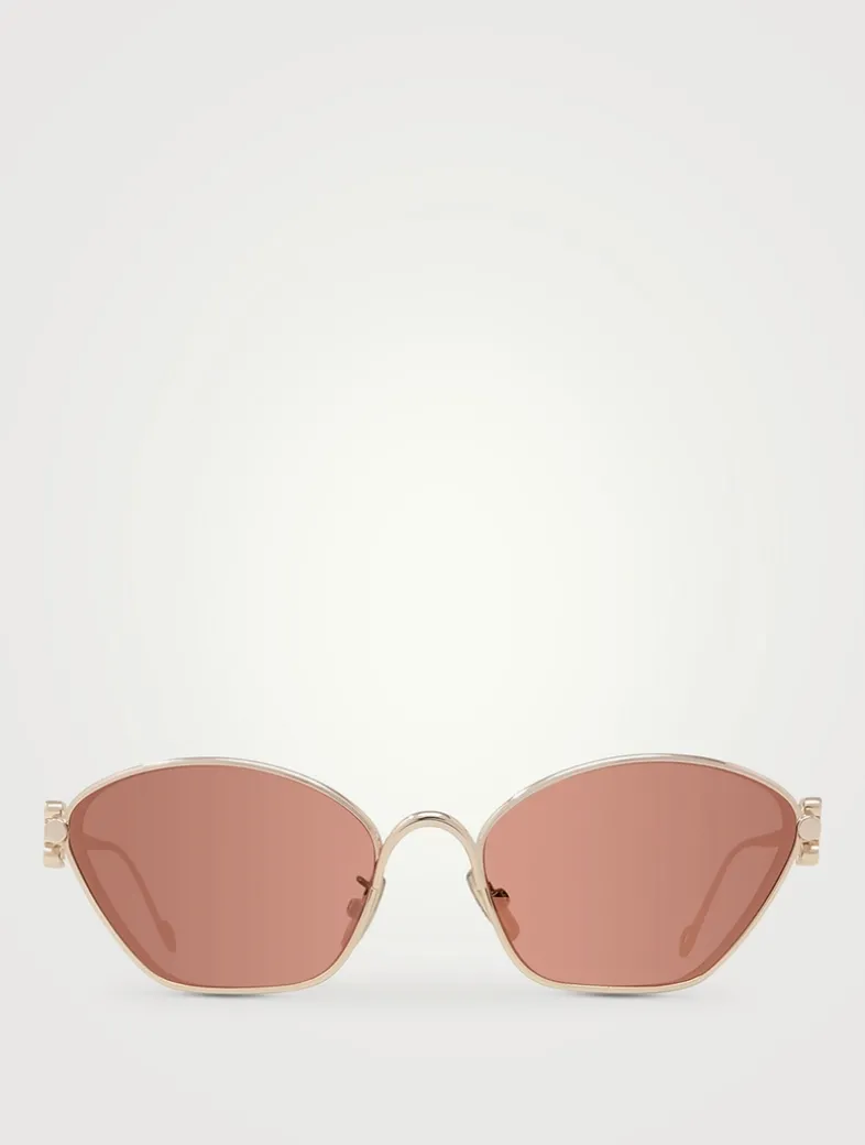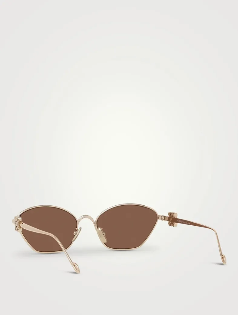Made from metal in a unique geometric shape with bevelled edges, these cat eye sunglasses feature colourful lenses and 3D Loewe Anagrams on the arms.