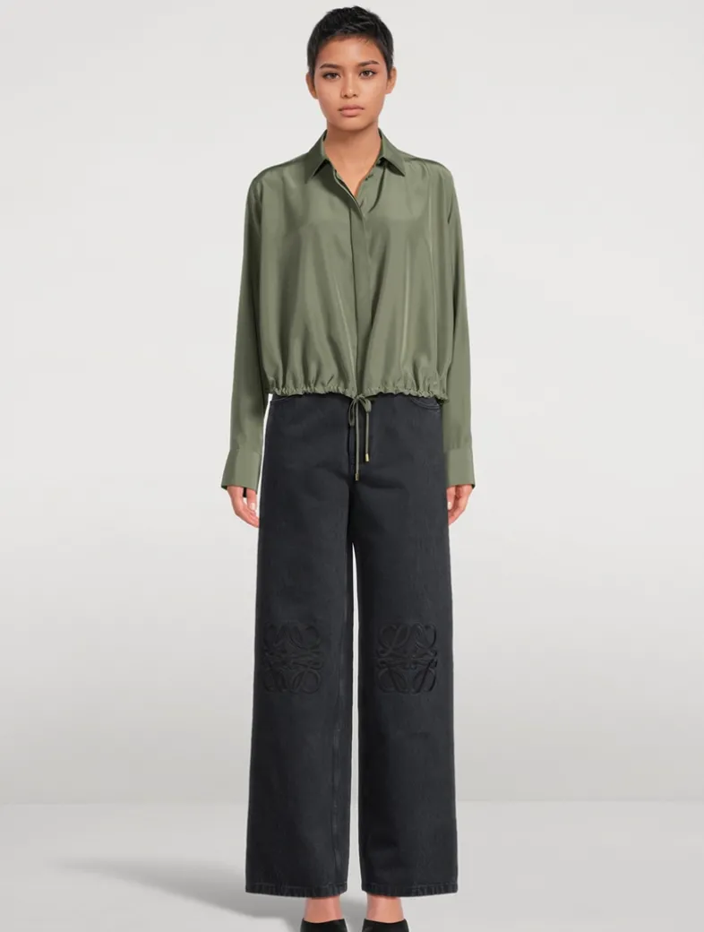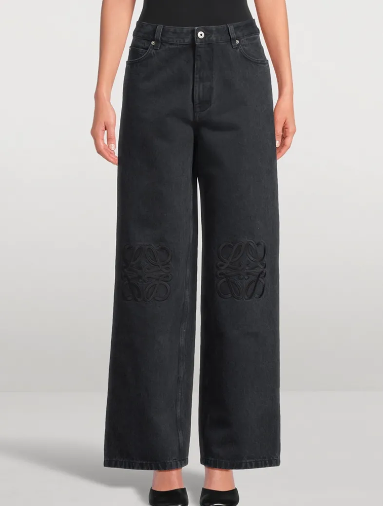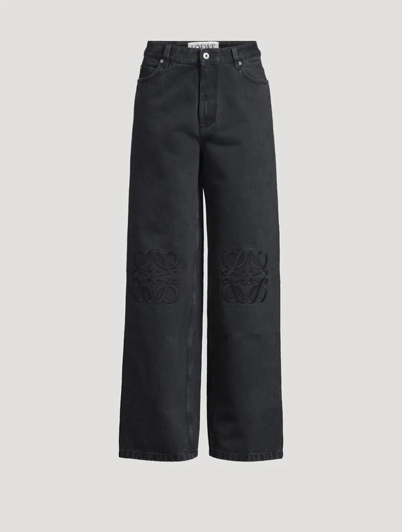 Designed to a mid-rise waist, these baggy jeans are crafted in medium-weight washed cotton denim. They are adorned with tonal Anagram embroidery on the knees.