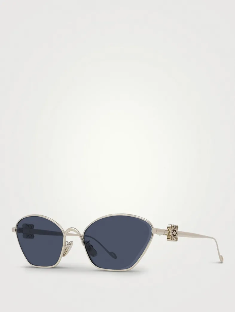Made from metal in a unique geometric shape with bevelled edges, these hexagonal sunglasses feature colourful lenses and 3D Loewe Anagrams on the arms.