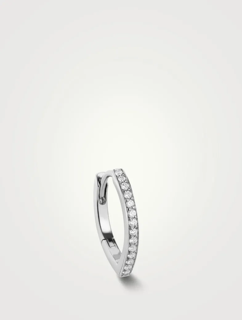 An 18k white gold pointed earring designed with a single-row silhouette with a row of pavé diamonds on one half.