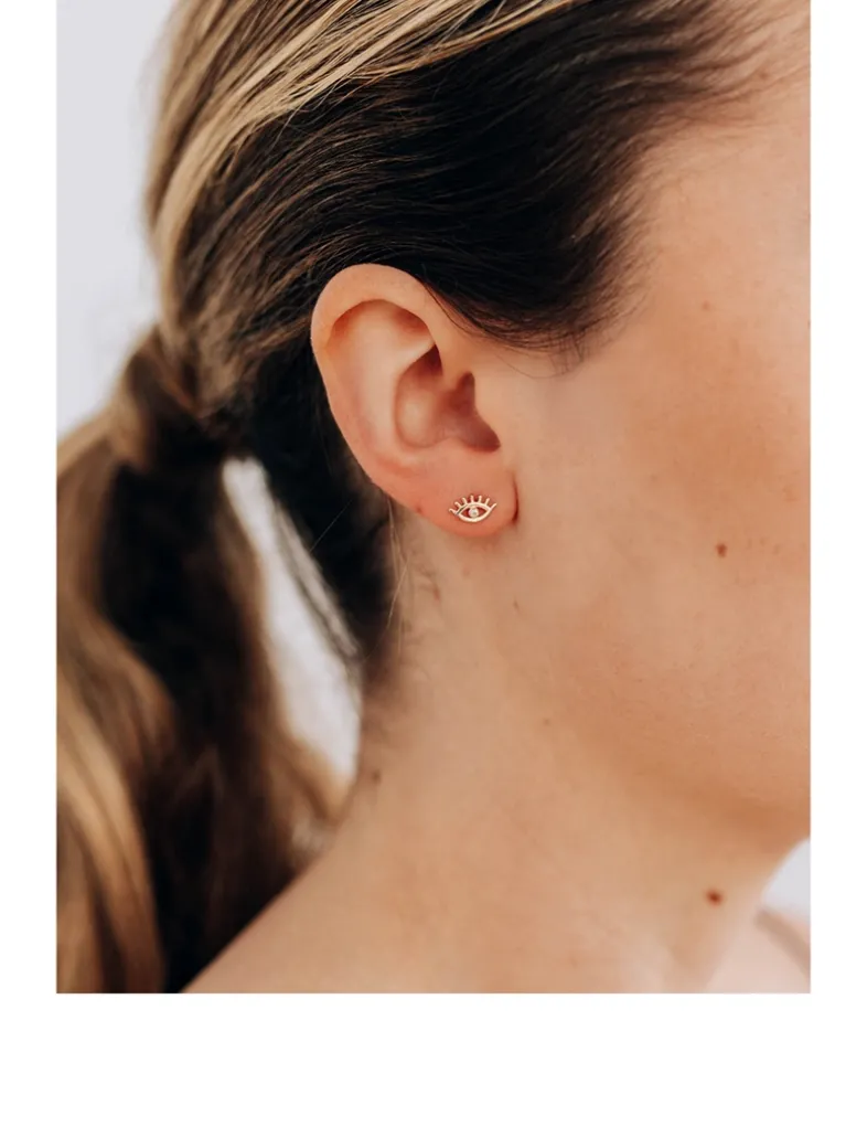 Inspired by her love of creating unique yet wearable ear stacks, the Anzie X Mel Soldera collection is designed for easy and effortless wear with some fun twists that reflect Melissa’s personal style. Mounted on a post, this delicate evil eye is encrusted with a dazzling stone.