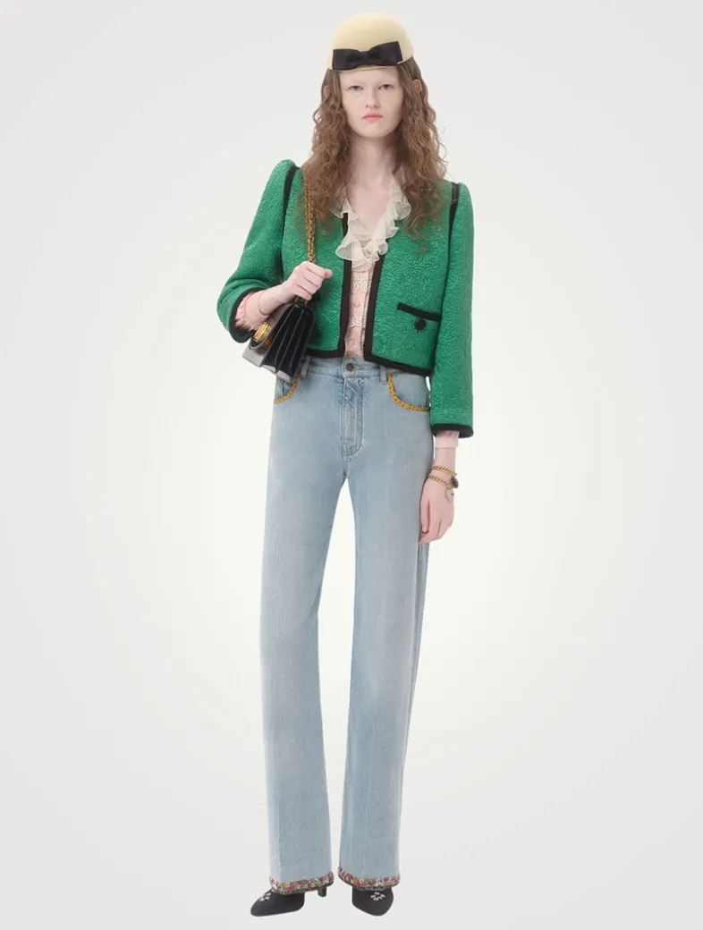 Highlighted with contrasting edges, this wool and silk topper is detailed with Valentino’s Après L’Hiver floral matelassé texture. It is cut to a boxy silhouette and finished with soutache buttons on the pockets.