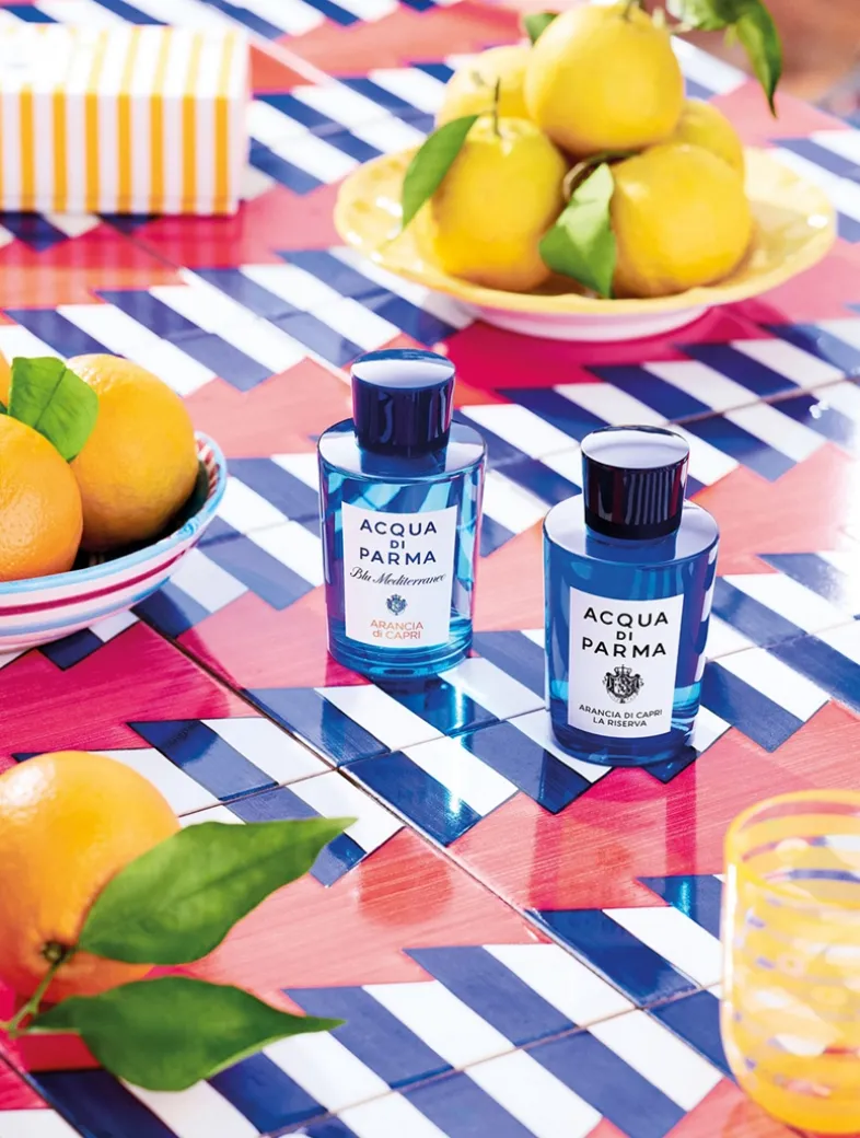 Arancia di Capri La Riserva features a cap and bottle in a new, more intense shade of blue, embodying the long-lasting sillage of the fragrance. The fragrance comes in an enlarged hatbox, complemented by a refreshed label with updated finishings.