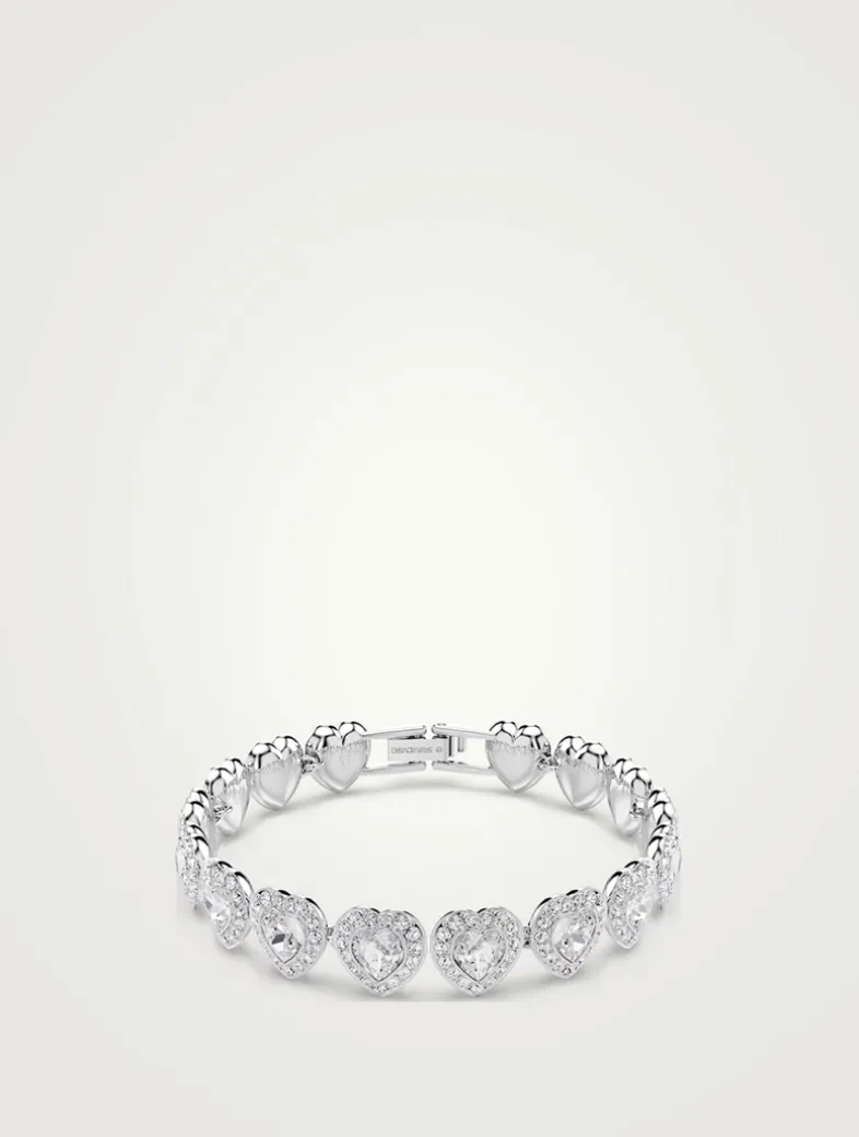 Co-created with Ariana Grande and Swarovski Global Creative Director Giovanna Engelbert, this capsule collection celebrates the love of music and the art of timeless style, combining spellbinding savoir-faire with contemporary cool. This rhodium-plated bracelet features a circle of heart-shaped crystals surrounded by clear pavé, adding a radiant, romantic touch.