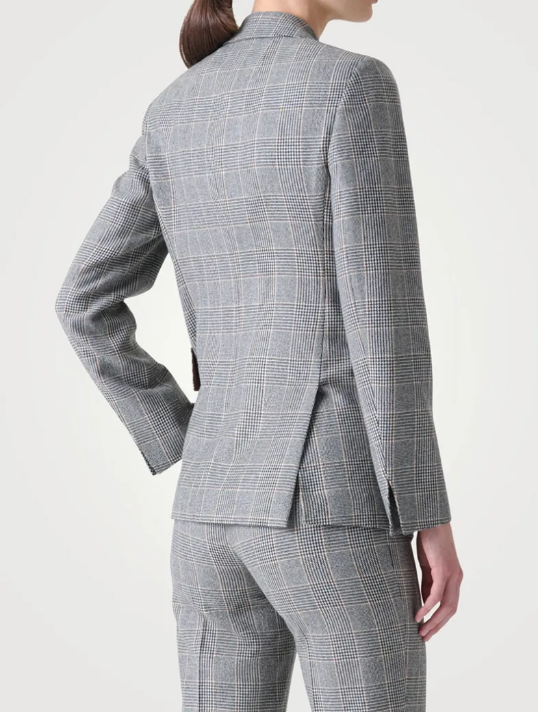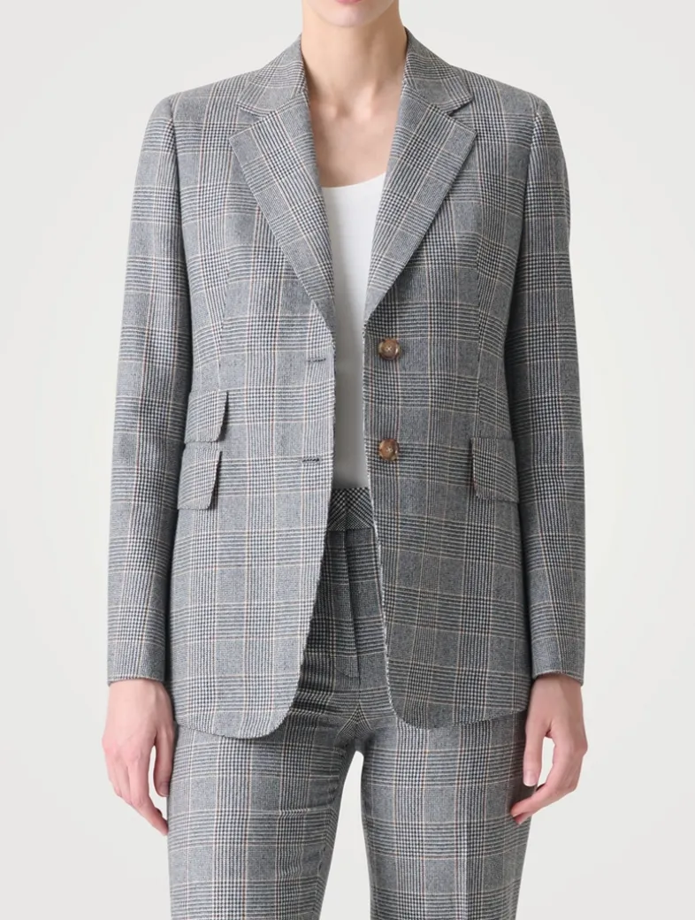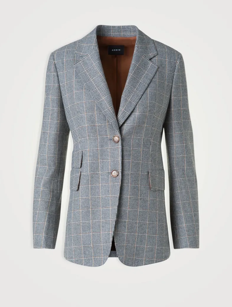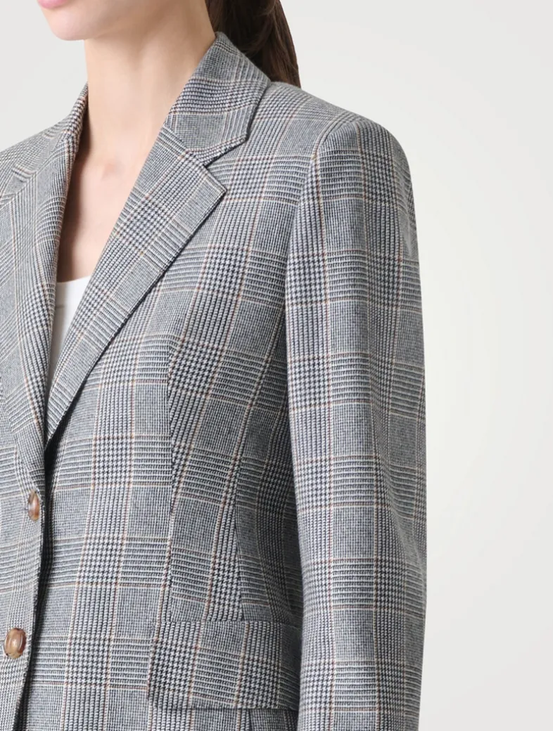 A timeless statement in tailoring, the Arie jacket is crafted from pure cashmere in an elegant Prince of Wales check. Cut in a single-breasted silhouette with a refined lapel collar and flap pockets, it channels quiet confidence through sartorial precision.