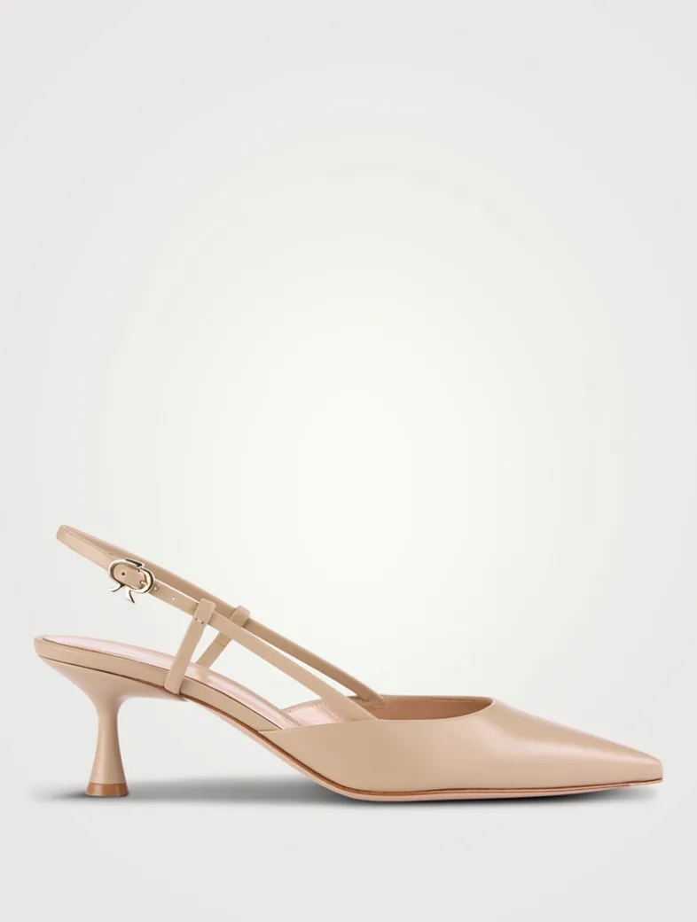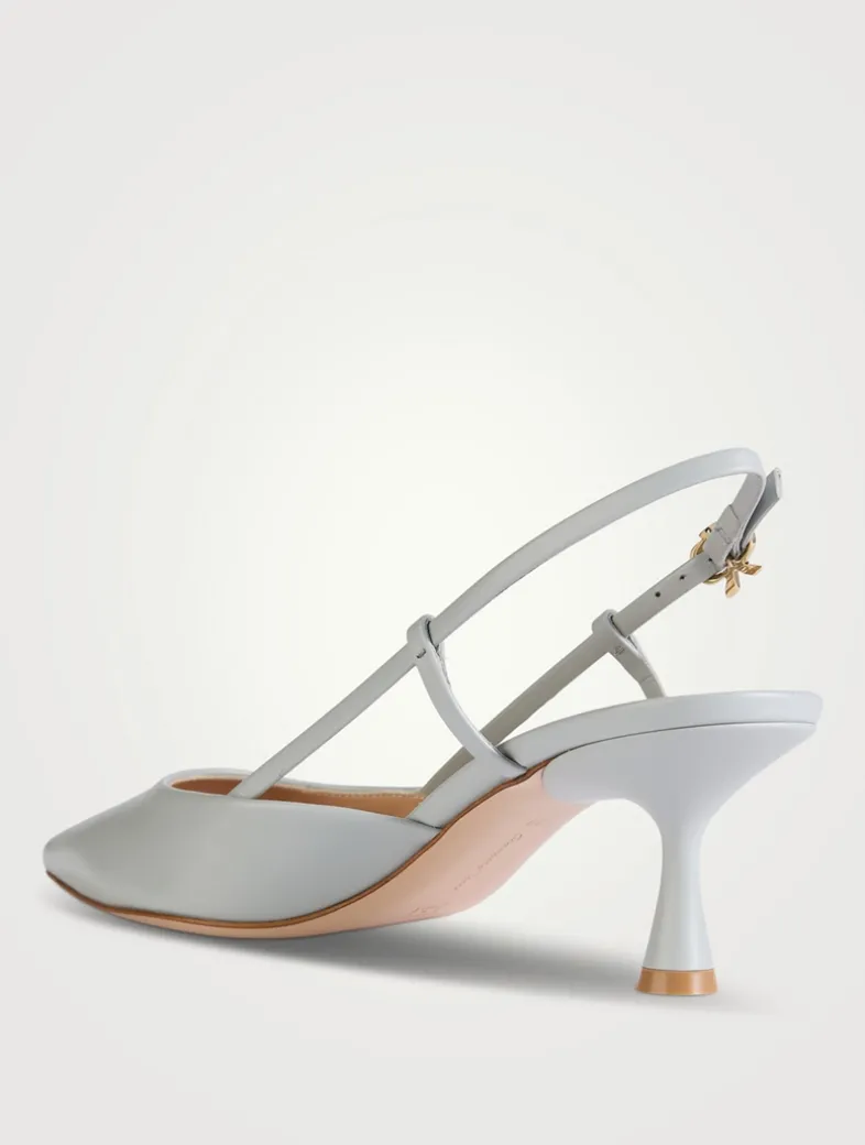 Set on a 55mm flared kitten heel, Ascent is a pointed-toe slingback with timeless appeal. The iconic Ribbon buckle in polished metal, signature of the brand, elegantly enriches the ankle strap. Handmade in Italy.