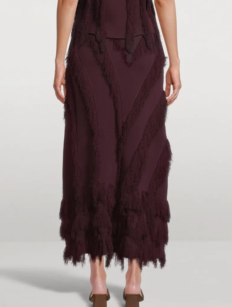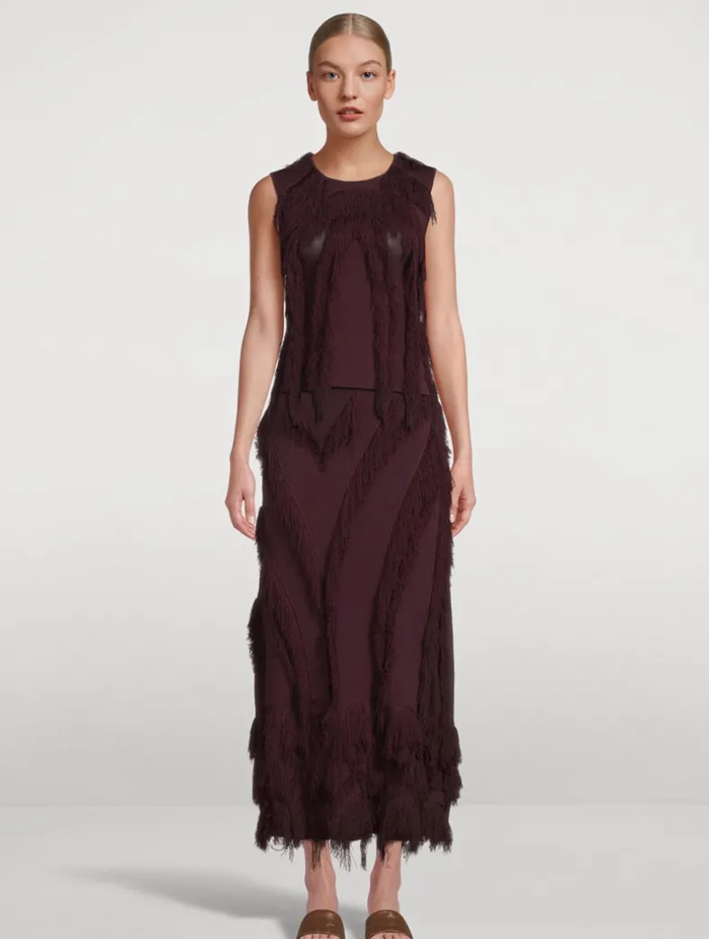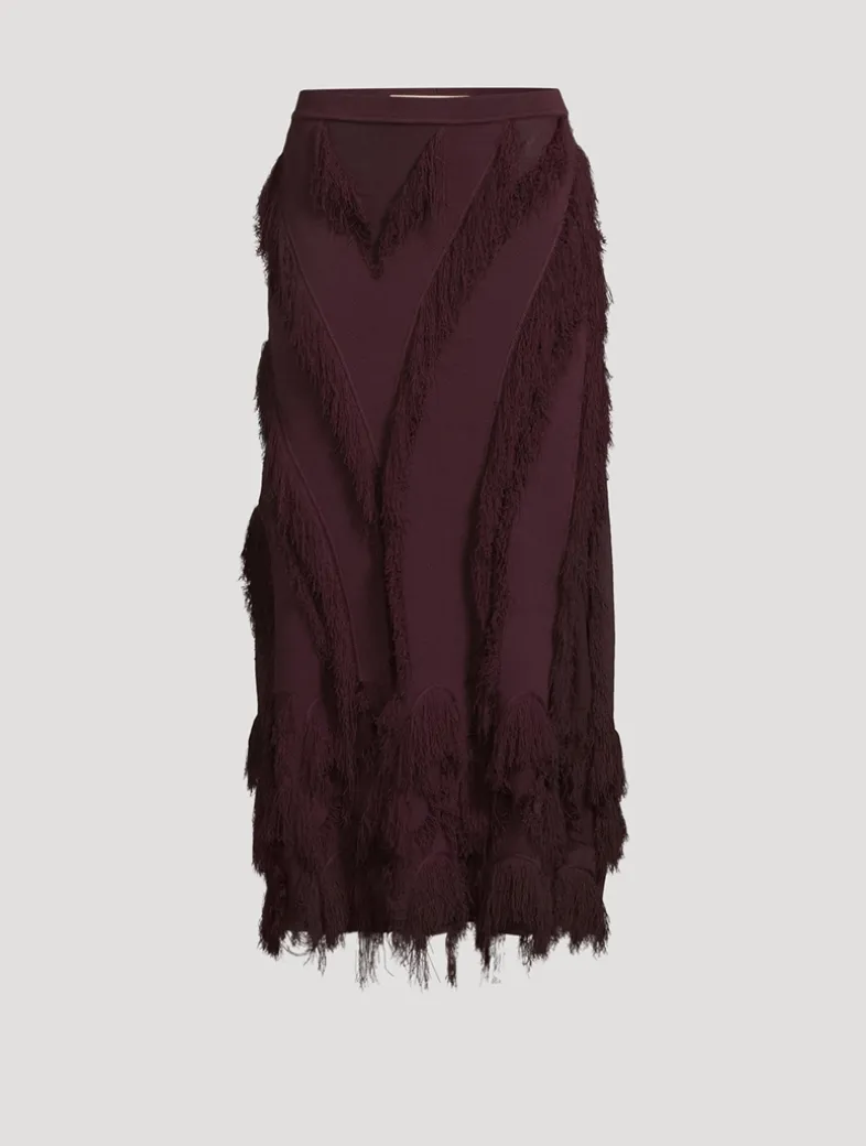 The Astrid Skirt is beautifully spun from jacquard with clipped threads that create floaty fringe, then further defined by added fringe appliqués. Featuring a pattern unique to this style, this ethereal piece has an elastic waistband for comfort and unfurls to a maxi silhouette alive in texture and movement.