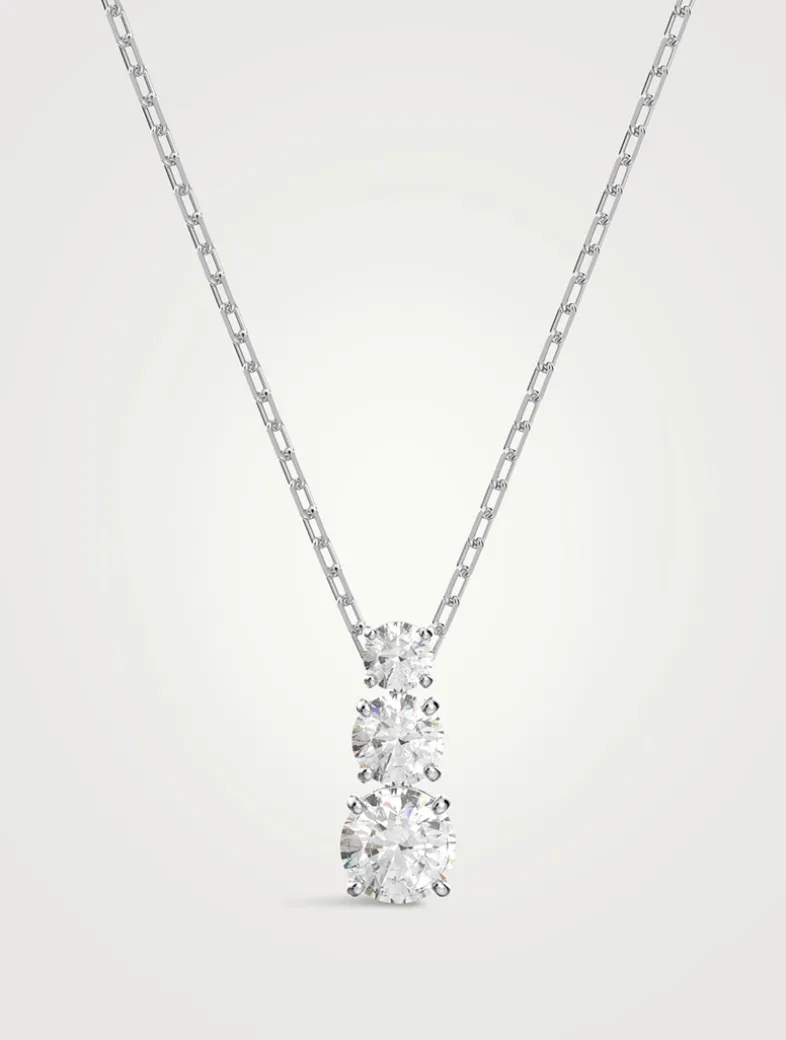 The past, the present, and the future combine in this mesmerizing Attract Trilogy Pendant. Inspired by the concept of eternal love, this romantic design is timelessly elegant. The trio of clear crystals dangle majestically down from the rhodium-plated chain.