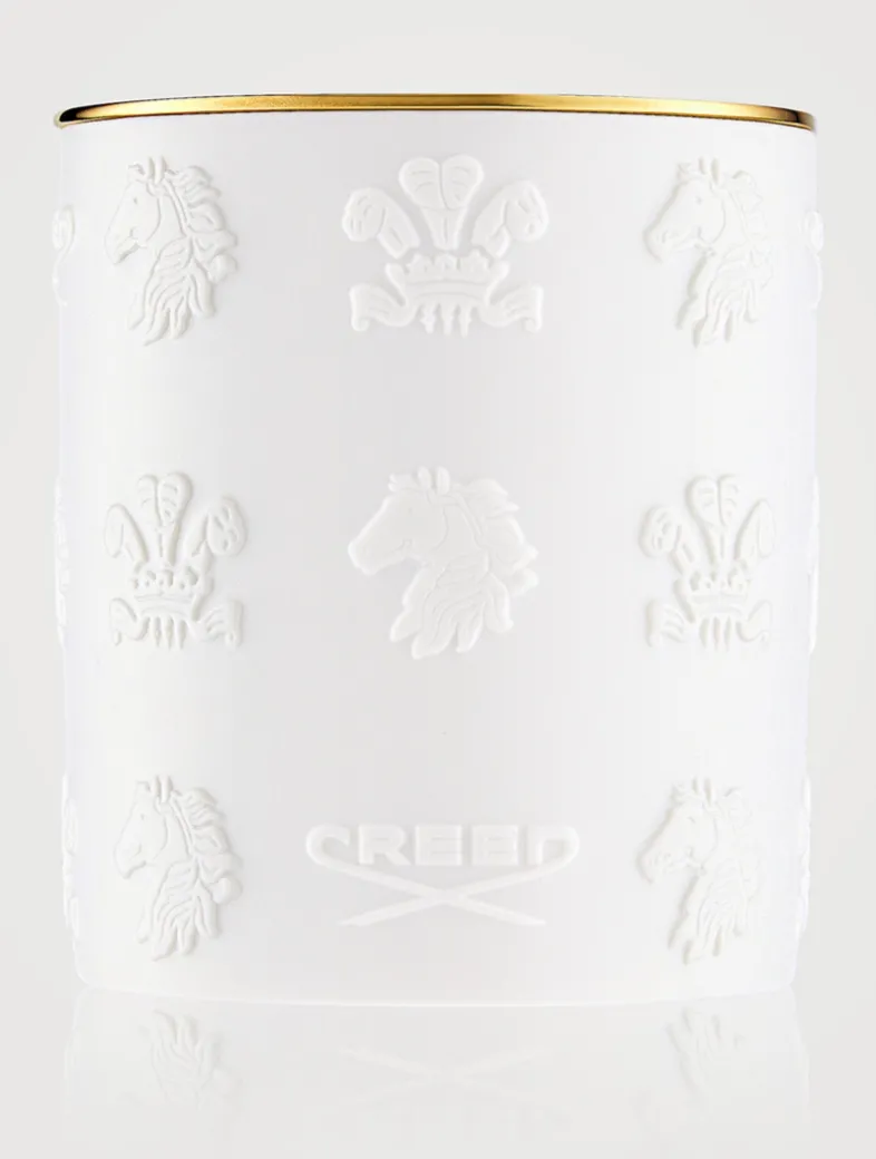 Unwind at home with the legendary scent of Aventus in the form of a luxurious hand-poured candle from The House of Creed. This exquisite creation combines the vibrant sparkle of bergamot with the succulent sweetness of pineapple, before yielding to an enduring birch base that is of signature Creed quality. Presented in the finest porcelain and embellished with the house logo, this objet d’art has been meticulously poured and packed by hand in France. For an optimal burn, trim the wick of your candle and recentre it prior to each lighting, always burning to the edge of the pot.