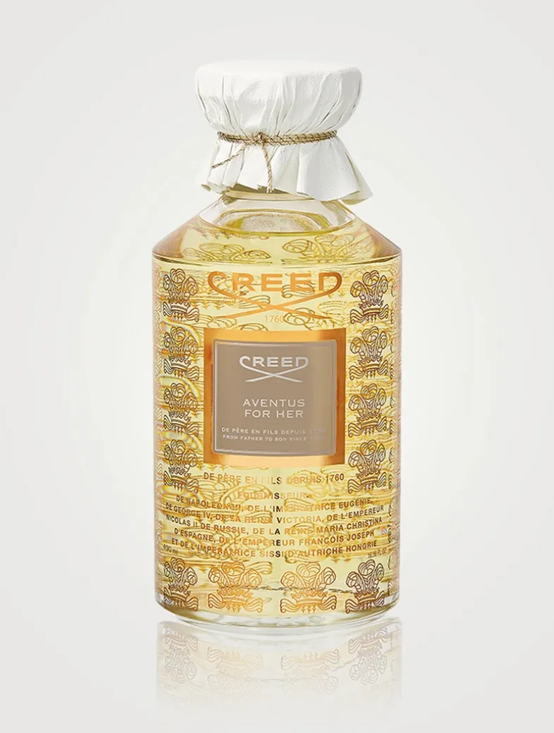 The feminine counterpart to the iconic Aventus men’s fragrance, Aventus For Her is a floral and fruity Eau de Parfum. Opening with head notes of crisp green apple, fragrant pink pepper, and zesty bergamot, the citrus and fruity character of this fragrance blossoms into a floral heart of rose, lilac, and ylang-ylang. This opulent and sensual perfume dries down to a base of sandalwood, patchouli, musk, and ambroxan, which amplifies the rich charm of this decadent blend.
