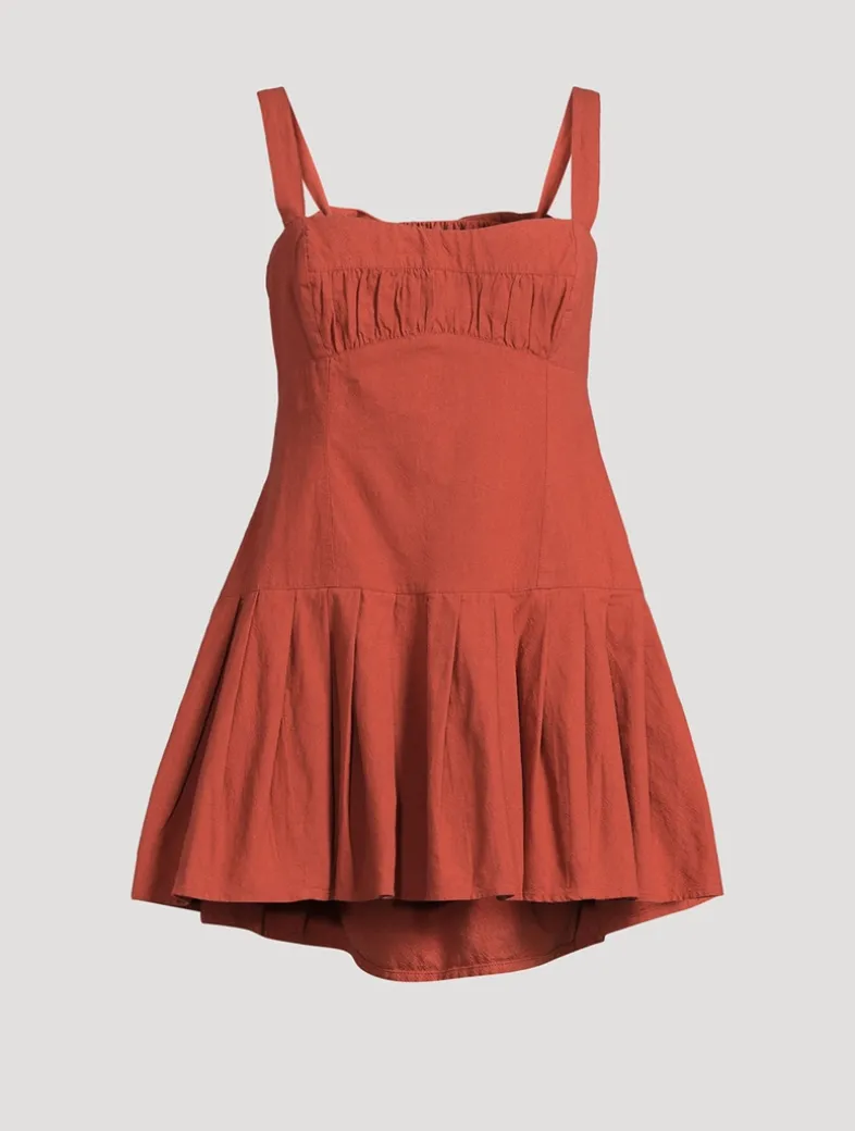 Soft, durable, and breathable, this style is made from 100% natural cotton. Forever femme and just as romantic, this sweet mini features ruched seaming at the bust, a sweetheart neckline, and a cut-out detail at the back with tied straps.
