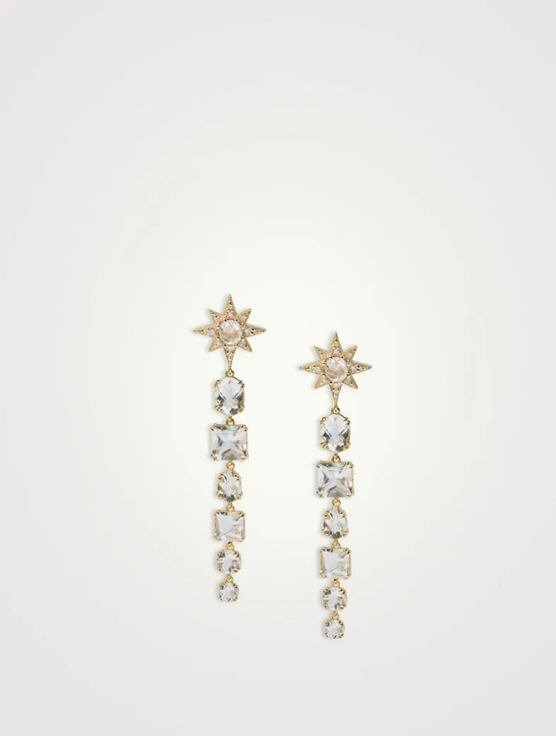 Aztec 14K Gold Starburst Astrid Earrings With White Topaz And Diamonds