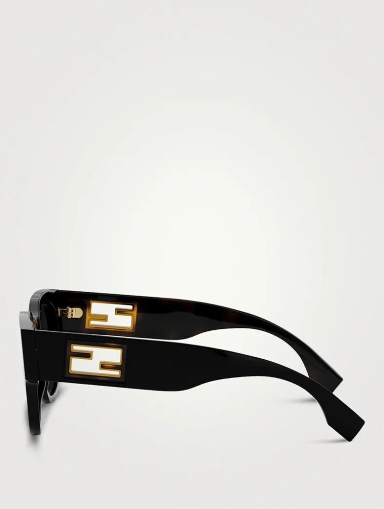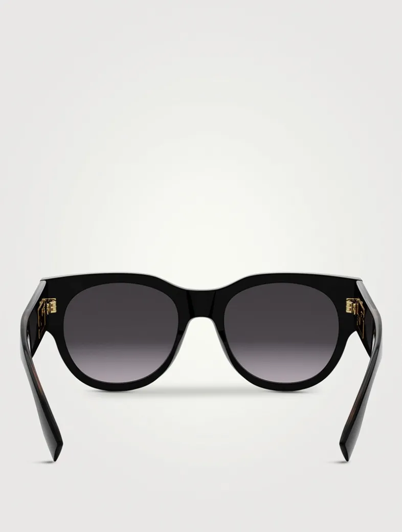 The iconic baguette logo gets a new interpretation on a round acetate construction. This oversized acetate shape with matching bold temples has an openwork logo with an elegant metal profile.