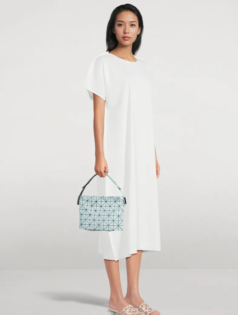 This baguette has a slouchy design featuring a single shoulder strap and slim profile. Made in Japan, it has a zippered opening and a gusseted, expandable bottom with a single zippered pocket inside.