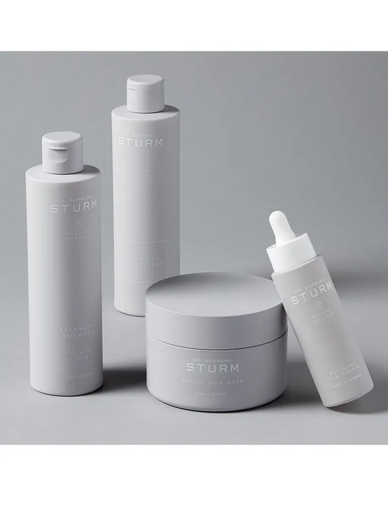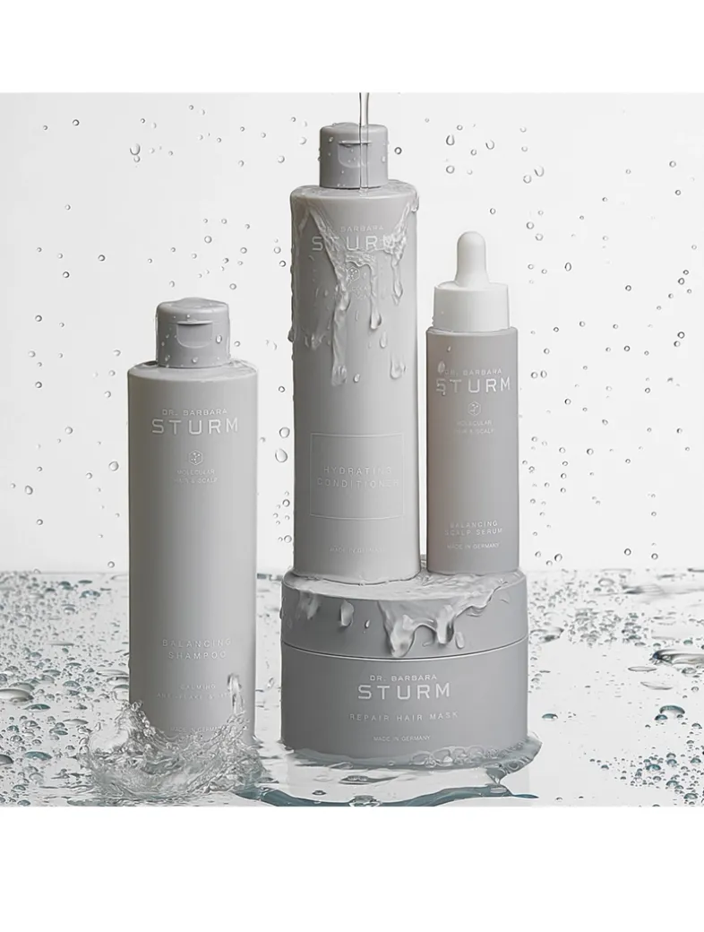 The Balancing Scalp Serum is an ingredient science-rich treatment which restores the scalp’s natural balance for optimal hair health. Dr. Sturm’s ingredient complex containing Japanese Camellia, Brown and Green Algae and Lavender soothes the appearance of irritation, redness and itching and reduces flakiness caused by a dry scalp. In addition, Pro-Vitamin B5 promotes the resiliency of the hair shaft and achieves an ‘anti-splitting effect,’ improving hair condition. The BALANCING SCALP SERUM also contains Sunflower Sprouts and Tara Extract, which protect the hair and scalp against heat, pollution particles and UV stress, Cationic Hyaluronic Acid, which boosts hydration and Purslane Extract, which has an anti-itching effect.