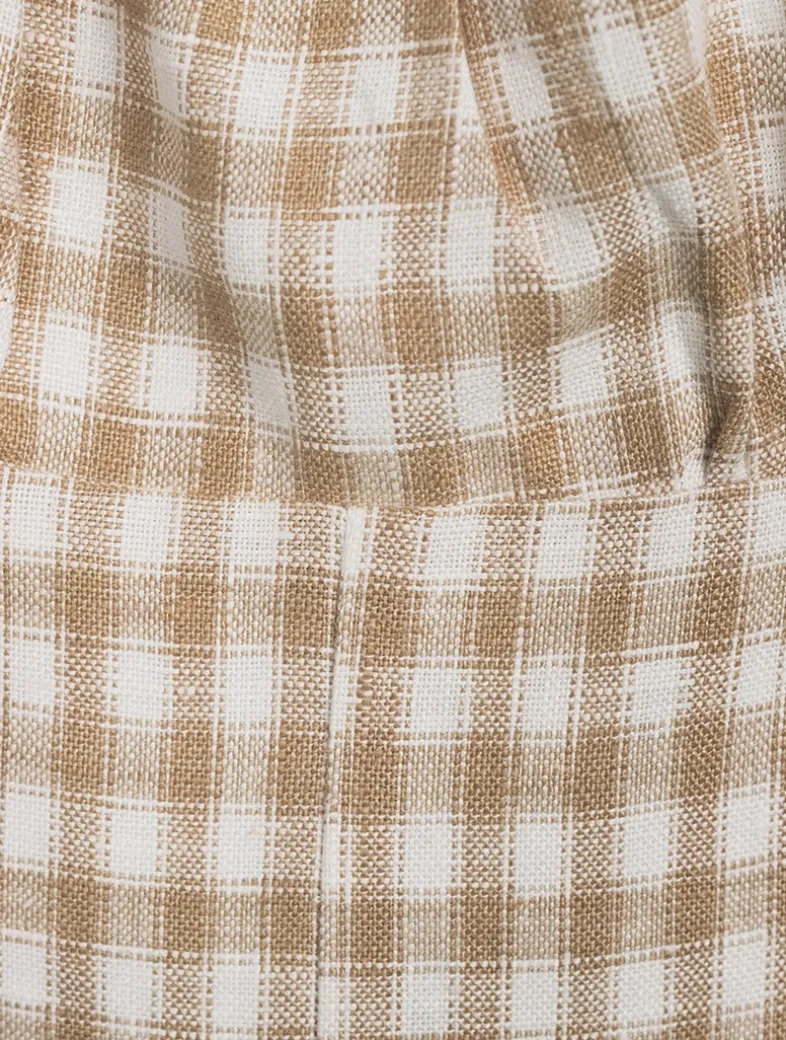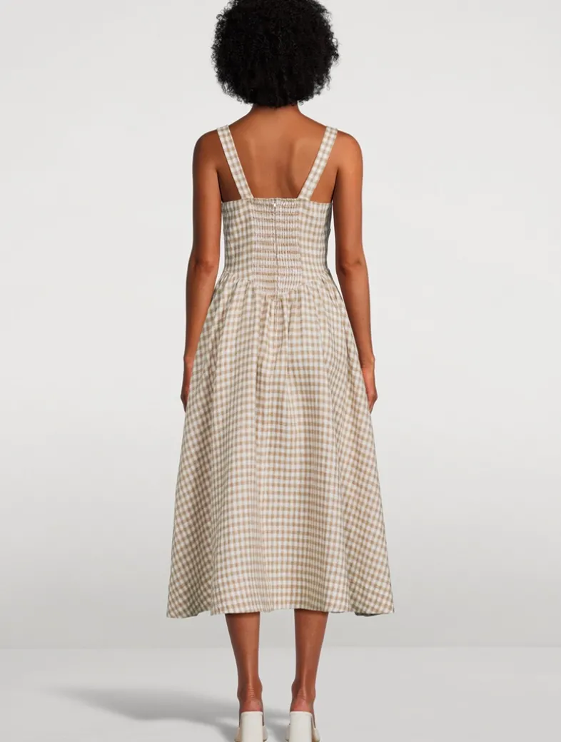 Made from an organically-grown cotton printed with a classic gingham motif, this dress exudes a simple charm. It has a fitted bodice with a scoop neckline detailed with a delicate bow. The back has a smocked panel with a zipped closure.