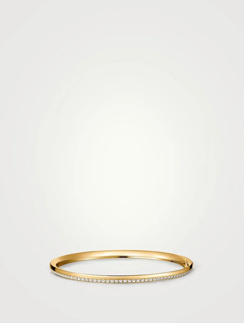 This contemporary and versatile bracelet is encrusted with a row of diamonds and can be worn alone or stacked with other styles.