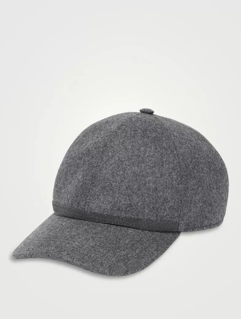 Virgin wool and cashmere flannel baseball cap with shiny band