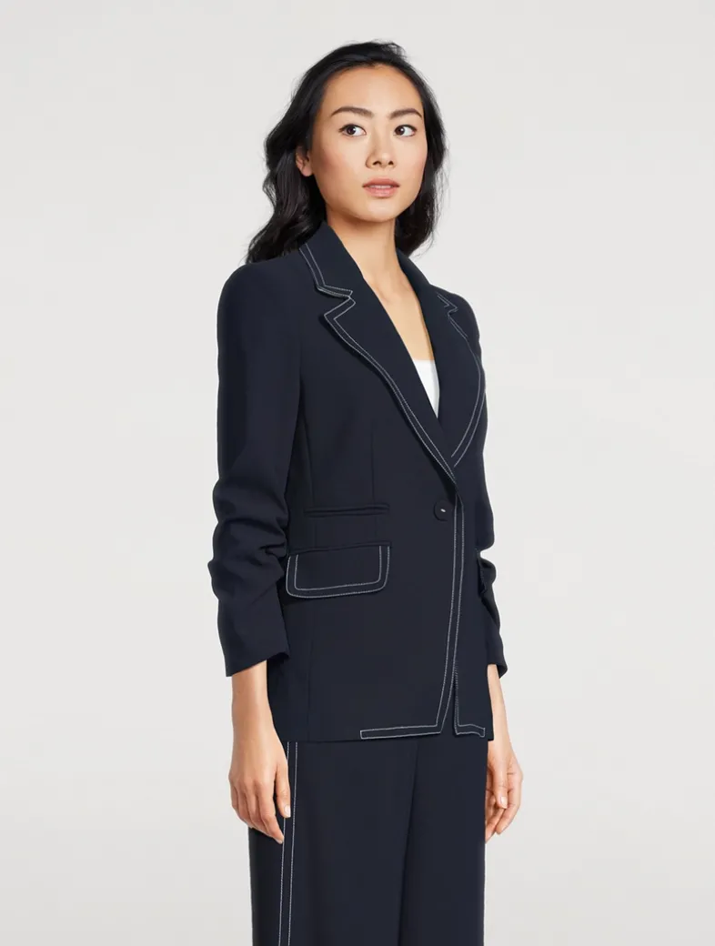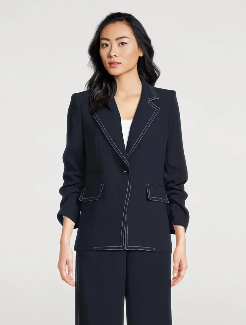 The Battista will quickly become your new go-to, thanks to its sleek look and impeccable fit. Expertly tailored, this blazer features a classic single-breasted silhouette and pre-ruched sleeves that add an element of nonchalance.
