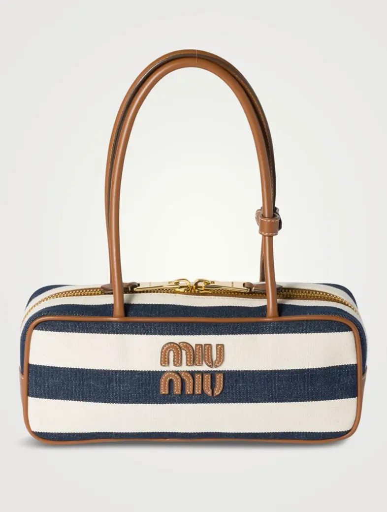 Leather handles Gold-tone hardware Zipper closure Linen blend interior with double zipper pocket Leather lettering logo on the front