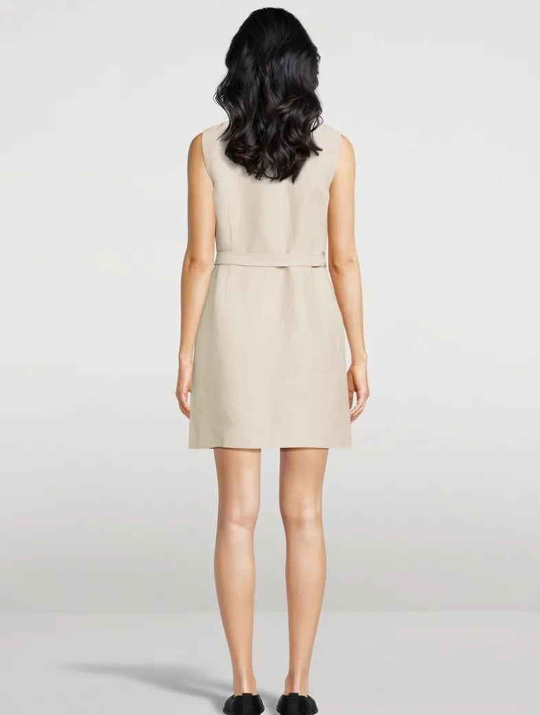 Belted to achieve a figure-flattering silhouette, this mini dress is buttoned up the front to meet a pointed collar. Bearing a subtle sheen, this version is cut from a custom linen fabric with a basket weave which highlights the characteristics of the fiber. Material is certified to the EUROREAN FLAX® Standard.
