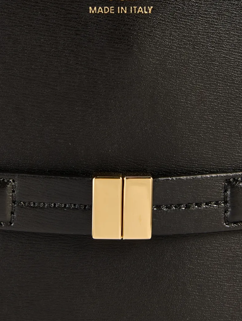 TOTEME bag defined with an elegant belt that can be used to cinch the flattened bucket silhouette or left open at the slide clasp for extra space. It is crafted in Italy from softly textured Palmellatta leather trimmed with gold-tone hardware, then is fitted with two internal slip pockets. Carry it throughout the day from the shoulder strap.