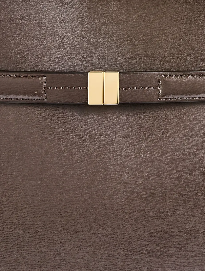 TOTEME bag defined with an elegant belt that can be used to cinch the flattened bucket silhouette or left open at the slide clasp for extra space. It is crafted in Italy from softly textured Palmellatta leather trimmed with gold-tone hardware, then is fitted with two internal slip pockets. Carry it throughout the day from the shoulder strap.