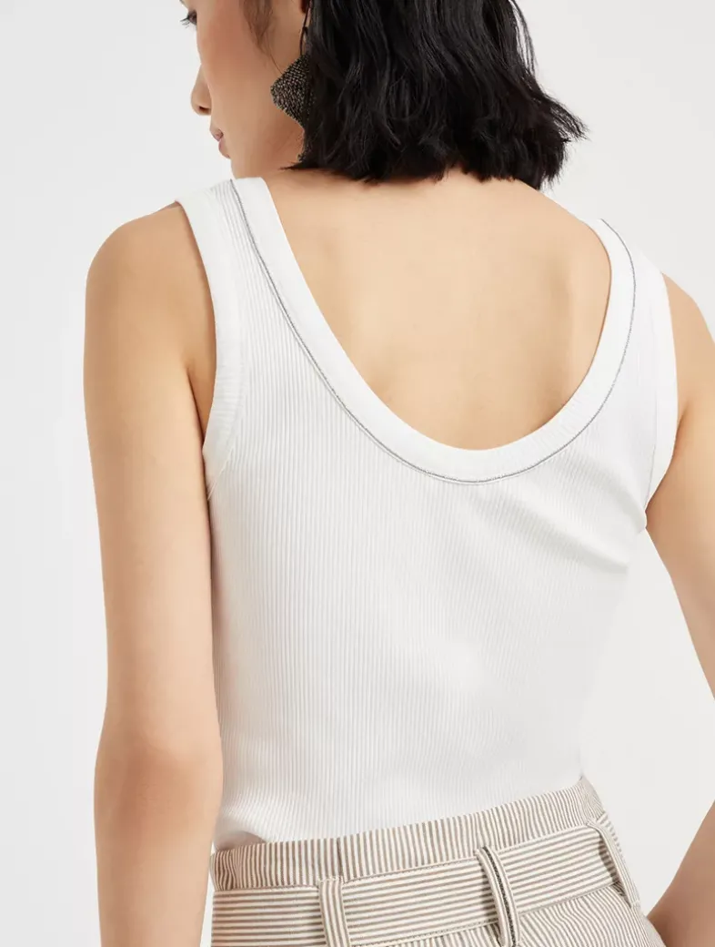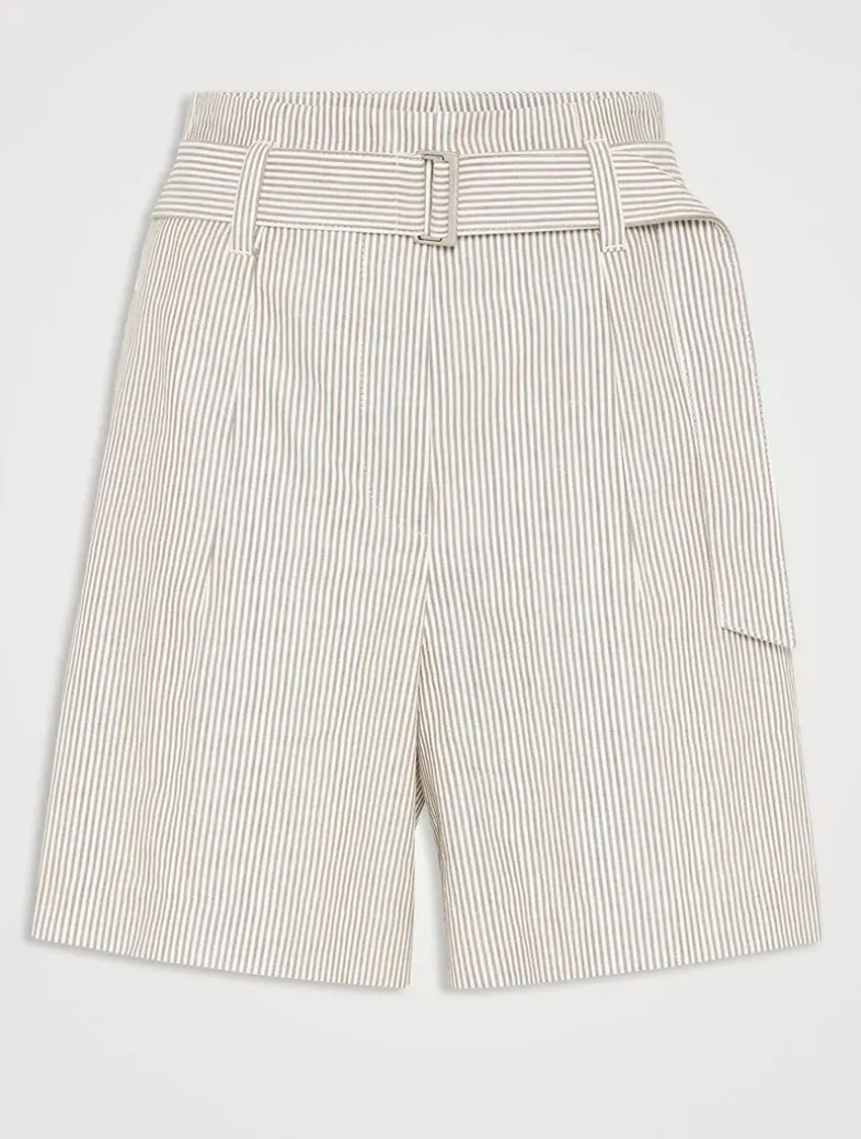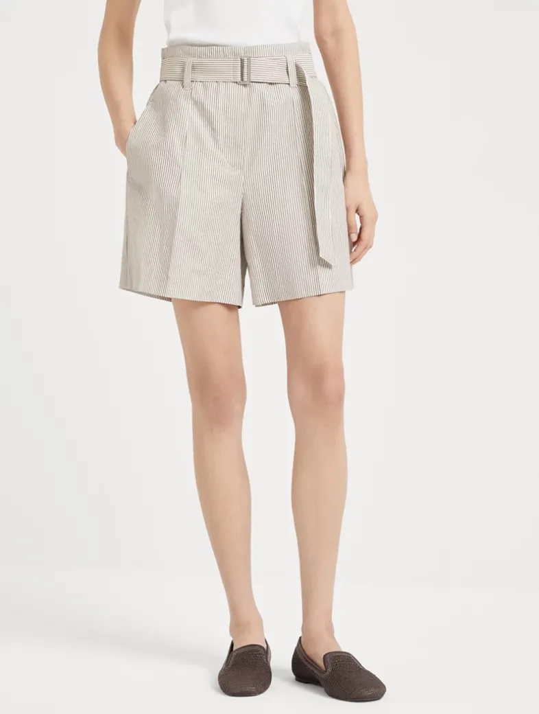 Striped cotton and linen twill formal Bermuda shorts with monili