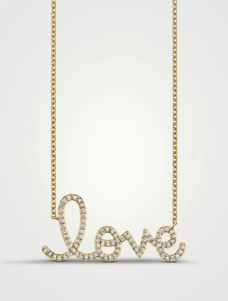 Crafted in 14k gold, this necklace features “love” in Sydney Evan’s signature hand-drawn script, accented with pavé-set diamonds—a radiant expression of affection and connection.