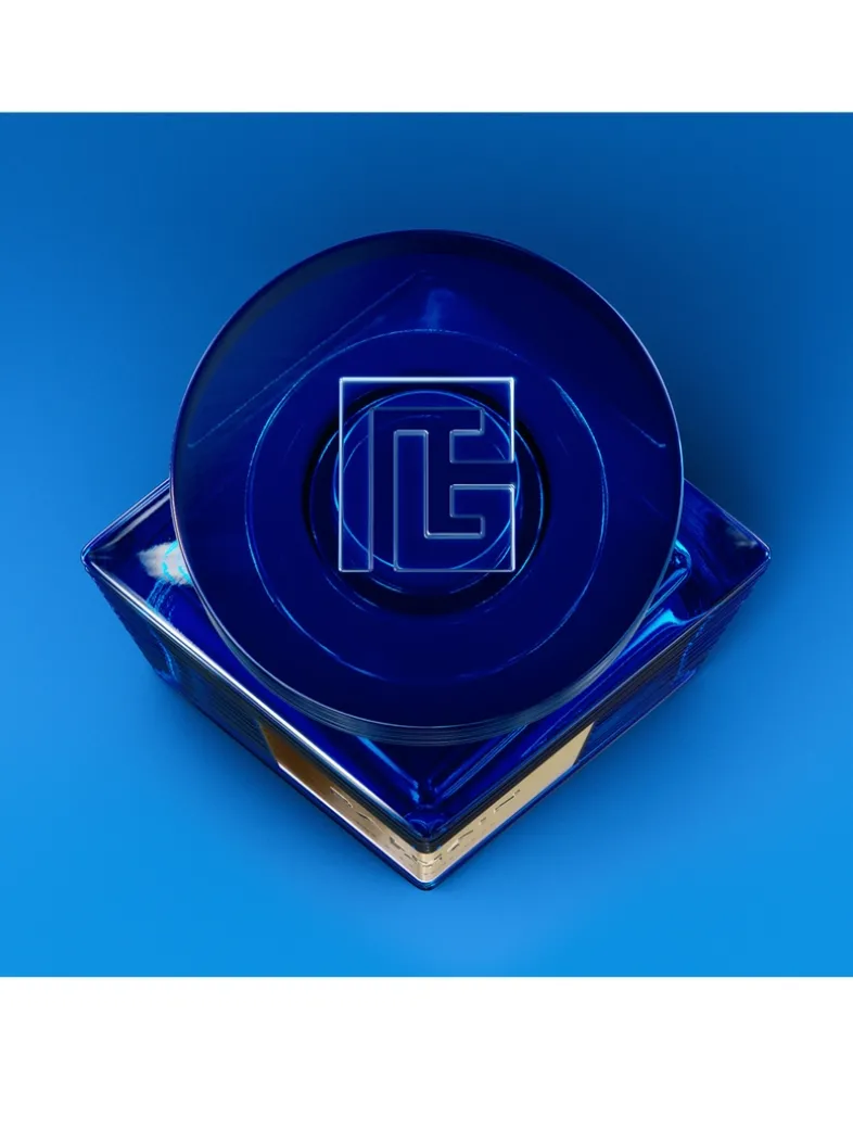 About the Bottle: In its translucent Mediterranean blue bottle, the new bottle design takes inspiration from the 1946 Balmain Élysées 64-83. It retains the unique striated collar and 90-degree angle label, while adding dimension to the new lozenge shape with a signature rayure Balmain and PB monogram.