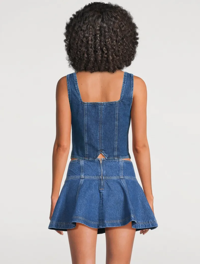 Embellished with embossed gold-tone buttons, this sleeveless top is crafted from a non-stretch denim fabric made with 80% organically-grown cotton and 20% recycled cotton.