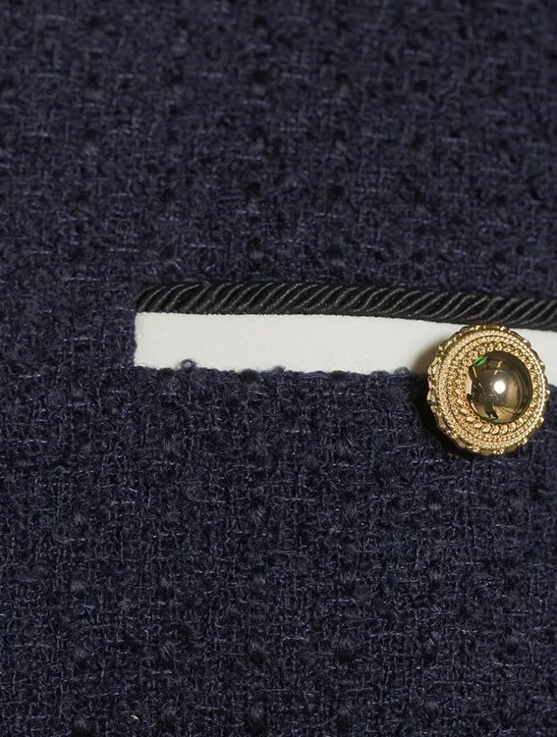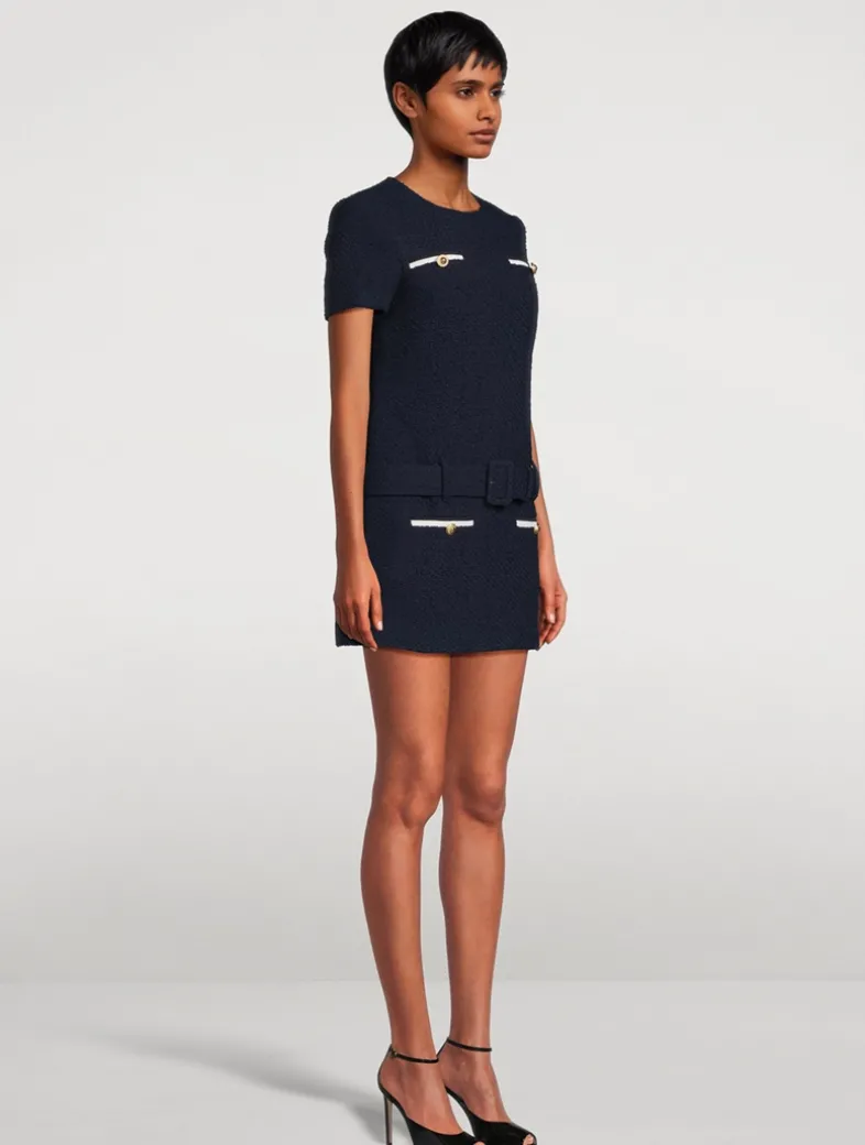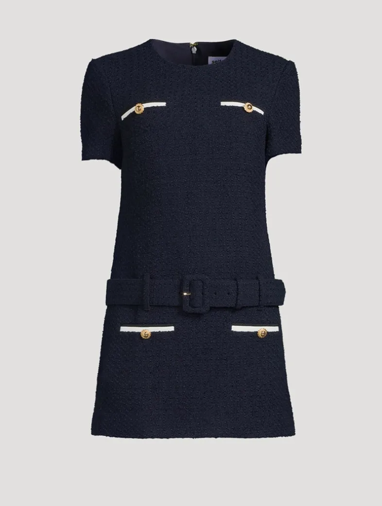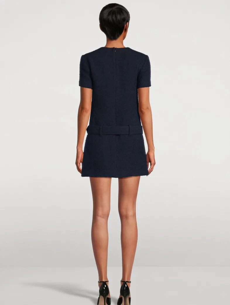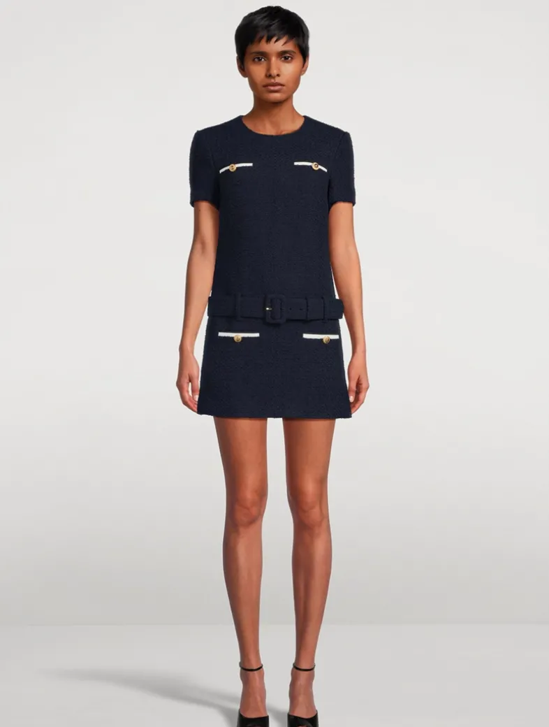 Exude ladylike polish in this bouclé mini dress, full of preppy charm with its gold-tone button detailing. A tonal belt adds definition to the waist.