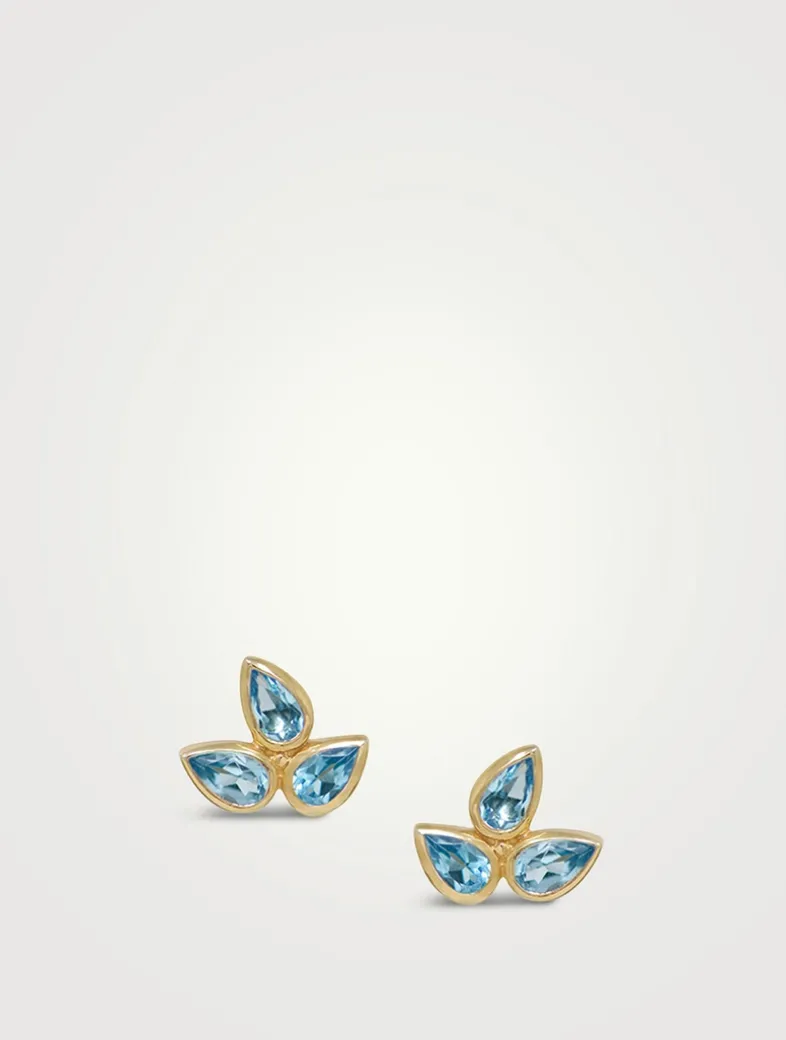 Bouquet 14K Gold Fleur de Lis Stud Earrings With Blue Topaz